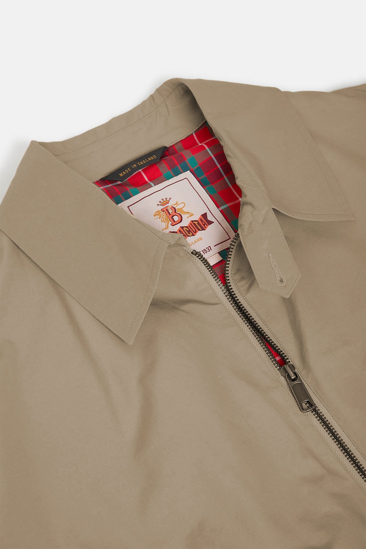 Die Baracuta G18 interpretiert einen Klassiker der späten 1960er-Jahre neu – mit klarer, moderner Kante, gefertigt aus dem ikonischen Baracuta Cloth, stolz hergestellt im Vereinigten Königreich. Die entspannte Silhouette bewegt sich dank zweier Bewegungsfalten mühelos mit, während der Kragenriegel mit Einzelknopfverschluss, der Zweiwege-Reißverschluss mit Logo und die vom Blouson-Design der 1970er inspirierten Taschen für einen unverwechselbaren, zugleich authentischen Look sorgen – funktional und ganz ohne Schnörkel. Vollständig mit dem charakteristischen Fraser-Tartan gefüttert, ist die G18 sowohl für die Stadt als auch für das Land gemacht. Mehr als nur eine Neuauflage: Ein bewusstes Designstatement. Jedes Detail steht für den Dialog zwischen Tradition und Moderne, Funktionalität und Stil: Ein Ausdruck von Baracutas anhaltender kultureller Relevanz.
