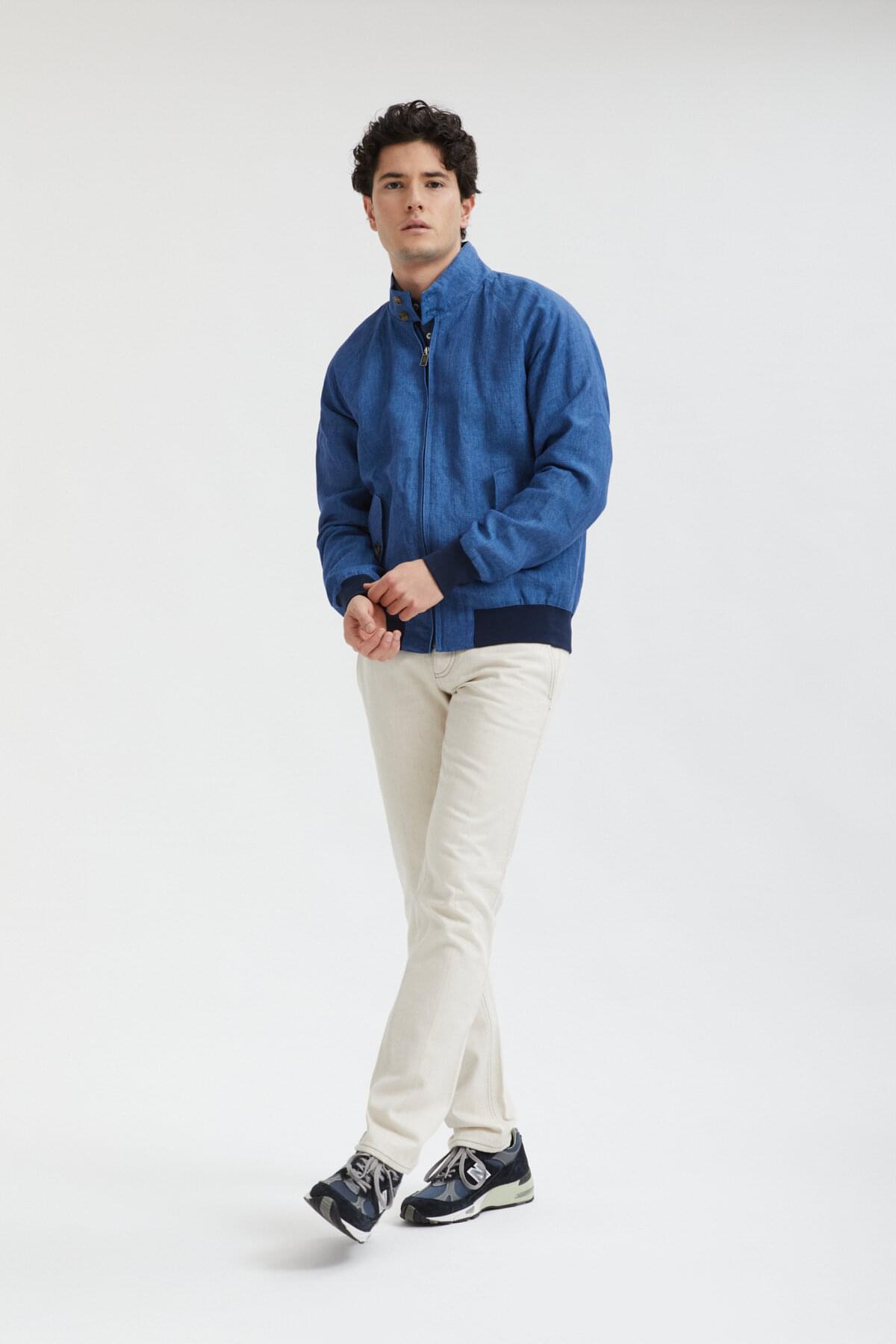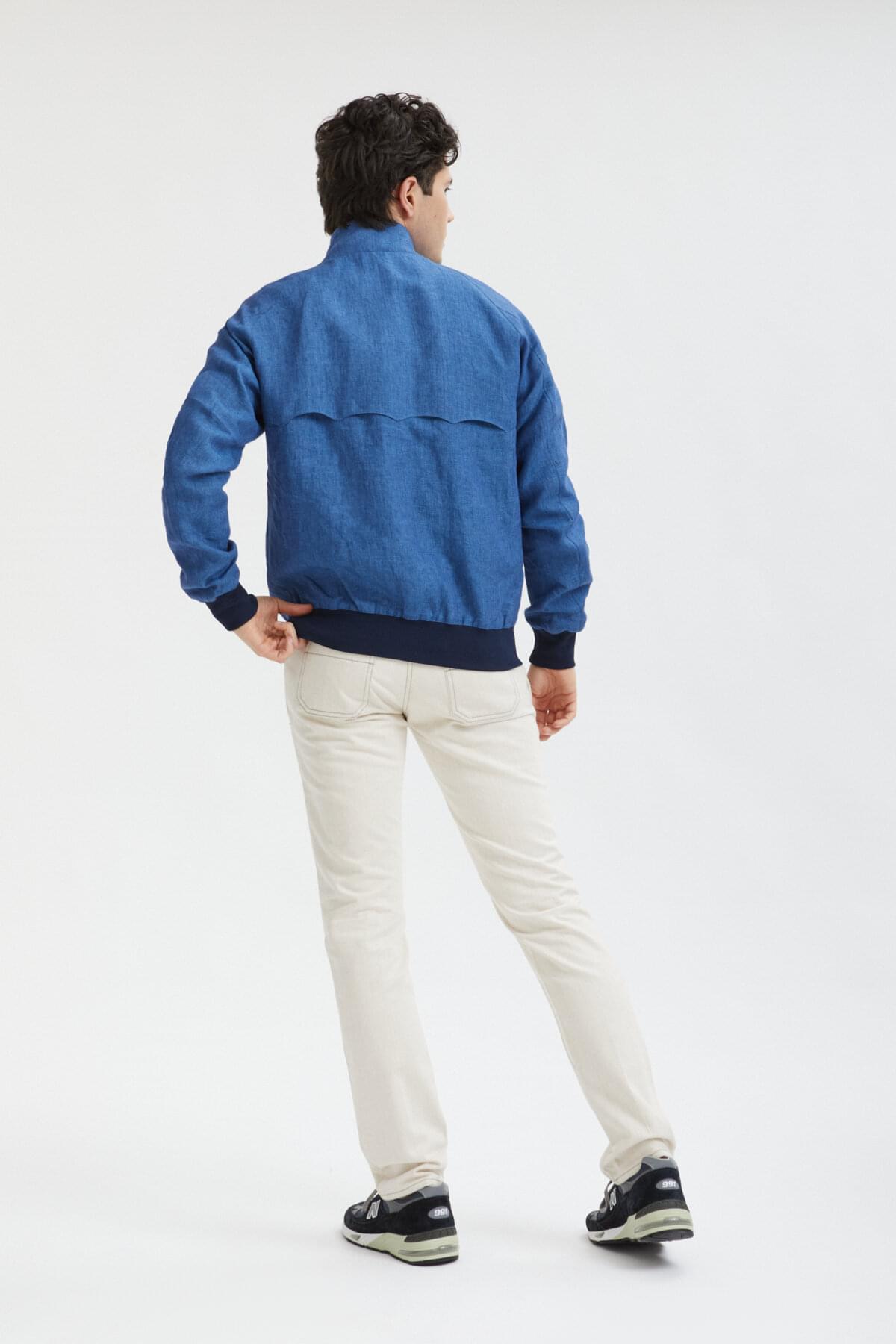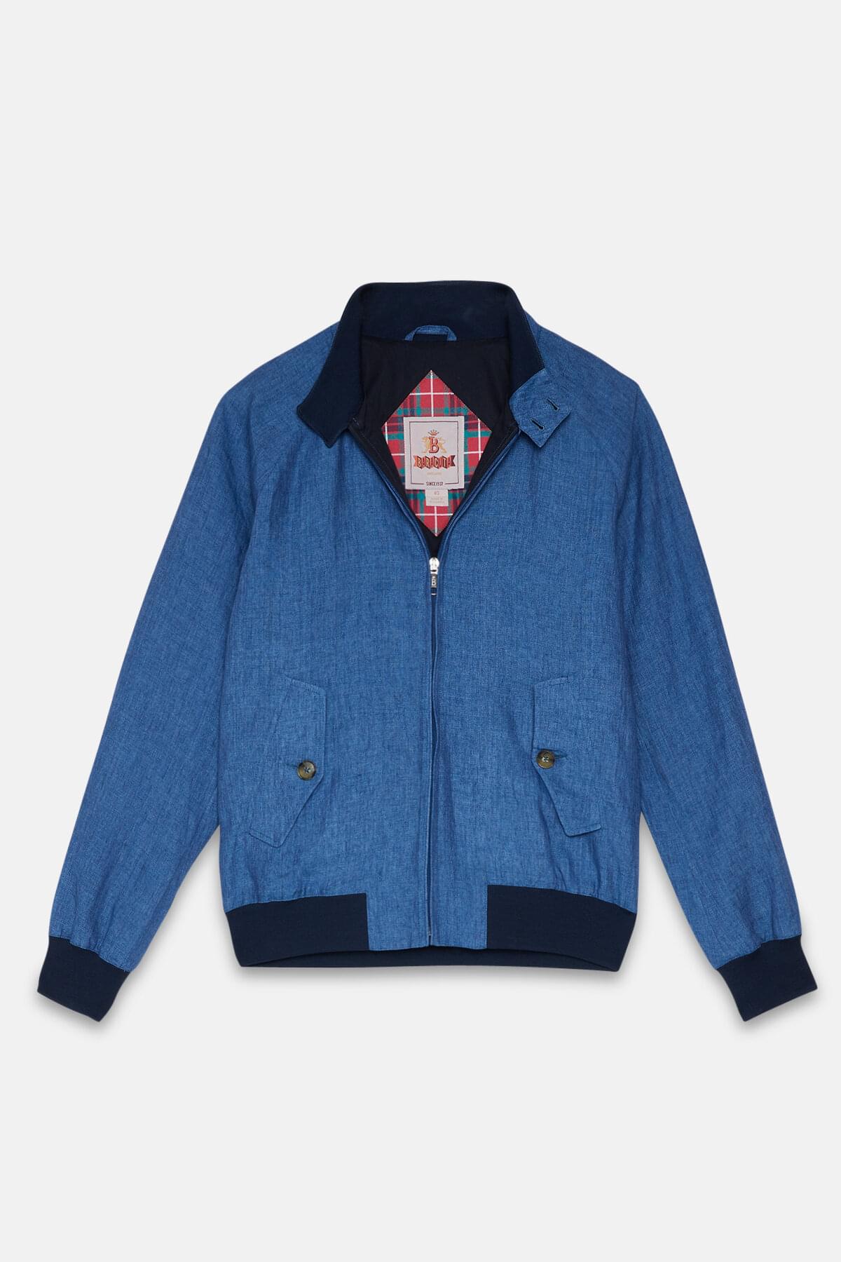 • Die Jacke G9 Linen ist eine frische Interpretation der klassischen Harrington-Jacke, setzt aber mit ein paar Details noch eins drauf. Die Jacke besitzt alle zeitlosen Merkmale des G9-Modells wie die Regenschirm-Rückenpasse, seitliche Schrägtaschen und den Baracuta-Kragen mit zwei Knöpfen. Der große Unterschied liegt jedoch im Material, denn der Stoff aus 100 % Leinen gibt der Jacke eine modische Used-Optik. Das weiche Futter besteht aus 100 % Baumwolle und bietet damit angenehmen Tragekomfort. Die Jacke wird durch ein paar Premium-Akzente komplettiert, etwa das Baracuta-Logo aus Metall am Reißverschluss und das exklusive Diamond-Fraser-Etikett. Verrückt, wer sich das entgehen lässt!