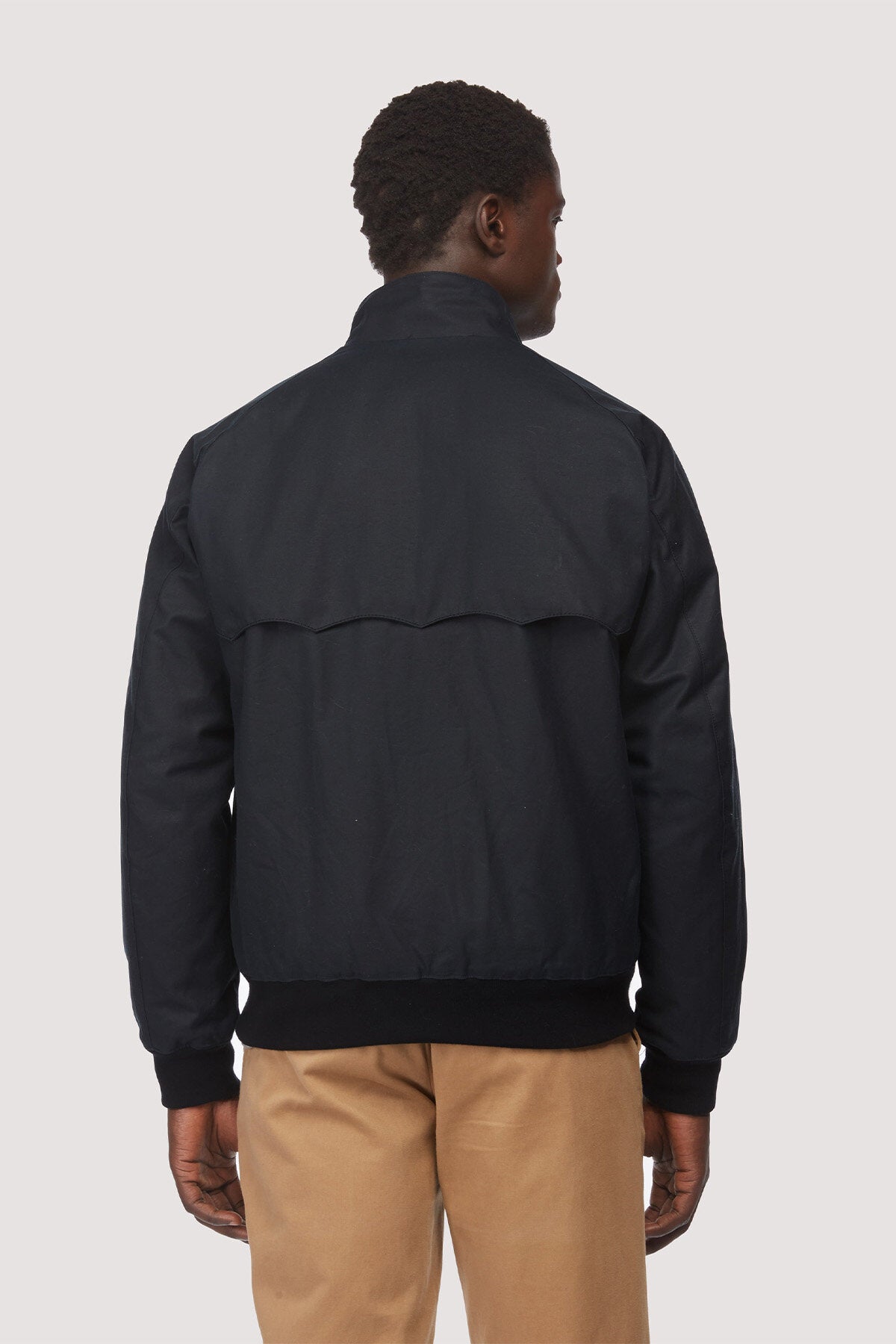 Mit unserer G9 Jacke aus gewachster Baumwolle von British Millerain mit Taschen, dem ursprünglichen Hersteller dieses Stoffes seit 1880, sind Sie für nasses und windiges Wetter gerüstet. Die Authentic Fit-Jacke ist weiter und entspannter als die Regular Fit-Jacke, die Sie in unserm klassischen G9 Harrington finden. Die Jacke hat eine leichte Änderung der traditionellen G9-Merkmale: Anstelle der charakteristischen schrägen Seitentaschen haben wir zwei größere Taschen in der Mitte der Jacke angebracht. Zu den weiteren Merkmalen des G9 gehören der kultige Schirmrücken und der klassische Eselsohr-Kragen mit zwei Knöpfen. Tragen Sie ihn mit unserem gewachsten Bucket Hat für maximalen Schutz vor Regen!
