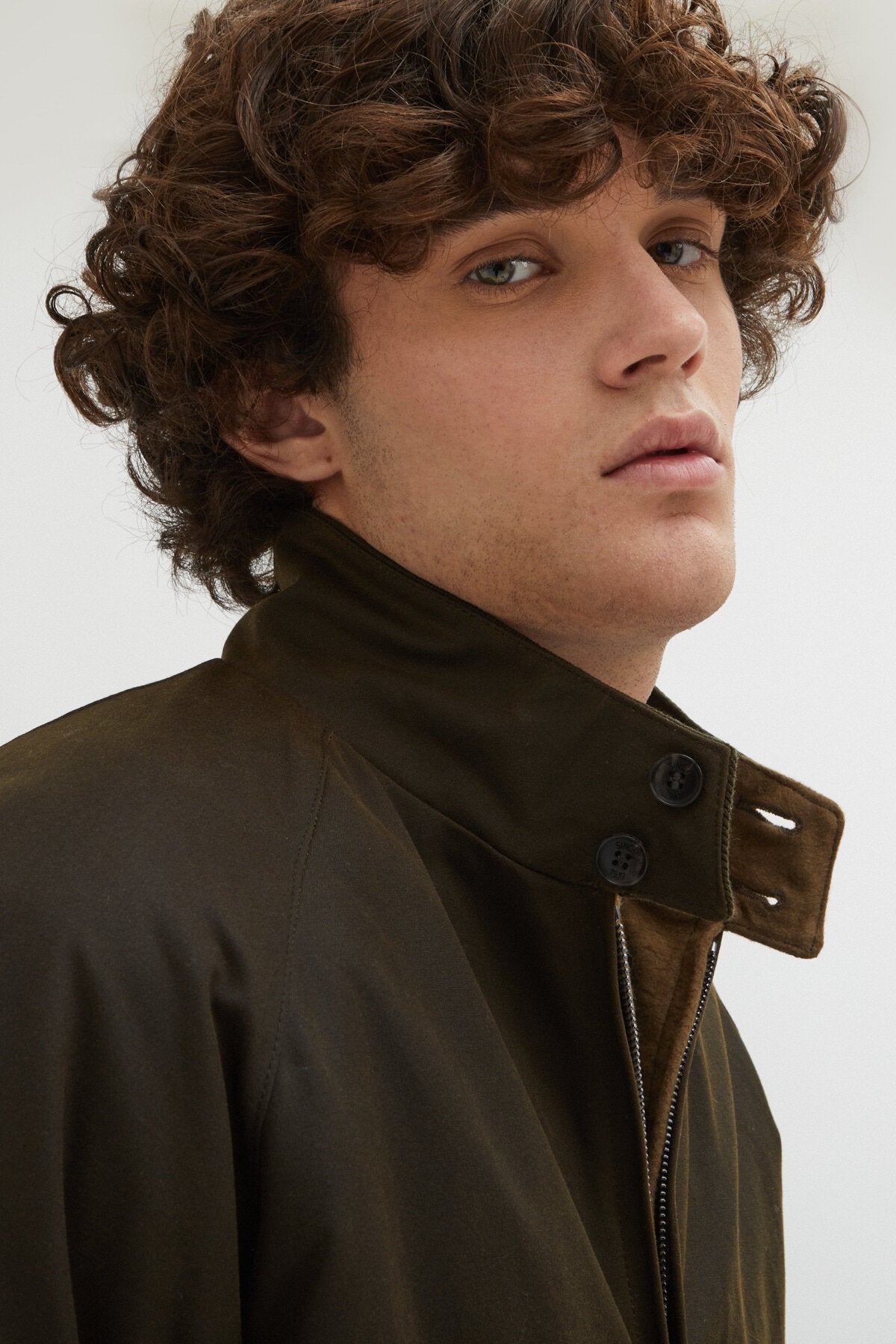 • • Baracuta-Kragen mit zwei Knöpfen und gerippter Innenseite