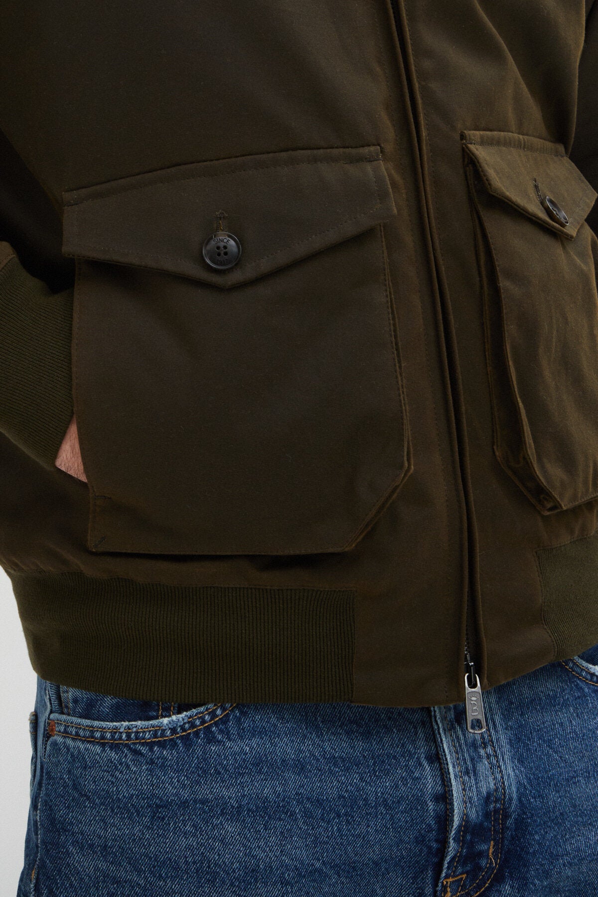 • Mit unserer G9 Jacke aus gewachster Baumwolle von British Millerain mit Taschen, dem ursprünglichen Hersteller dieses Stoffes seit 1880, sind Sie für nasses und windiges Wetter gerüstet. Die Authentic Fit-Jacke ist weiter und entspannter als die Regular Fit-Jacke, die Sie in unserm klassischen G9 Harrington finden. Die Jacke hat eine leichte Änderung der traditionellen G9-Merkmale: Anstelle der charakteristischen schrägen Seitentaschen haben wir zwei größere Taschen in der Mitte der Jacke angebracht. Zu den weiteren Merkmalen des G9 gehören der kultige Schirmrücken und der klassische Eselsohr-Kragen mit zwei Knöpfen. Tragen Sie ihn mit unserem gewachsten Bucket Hat für maximalen Schutz vor Regen!