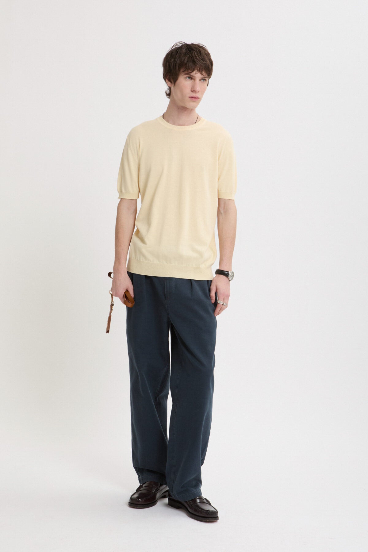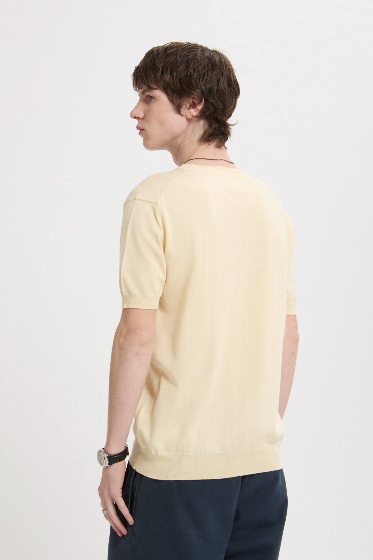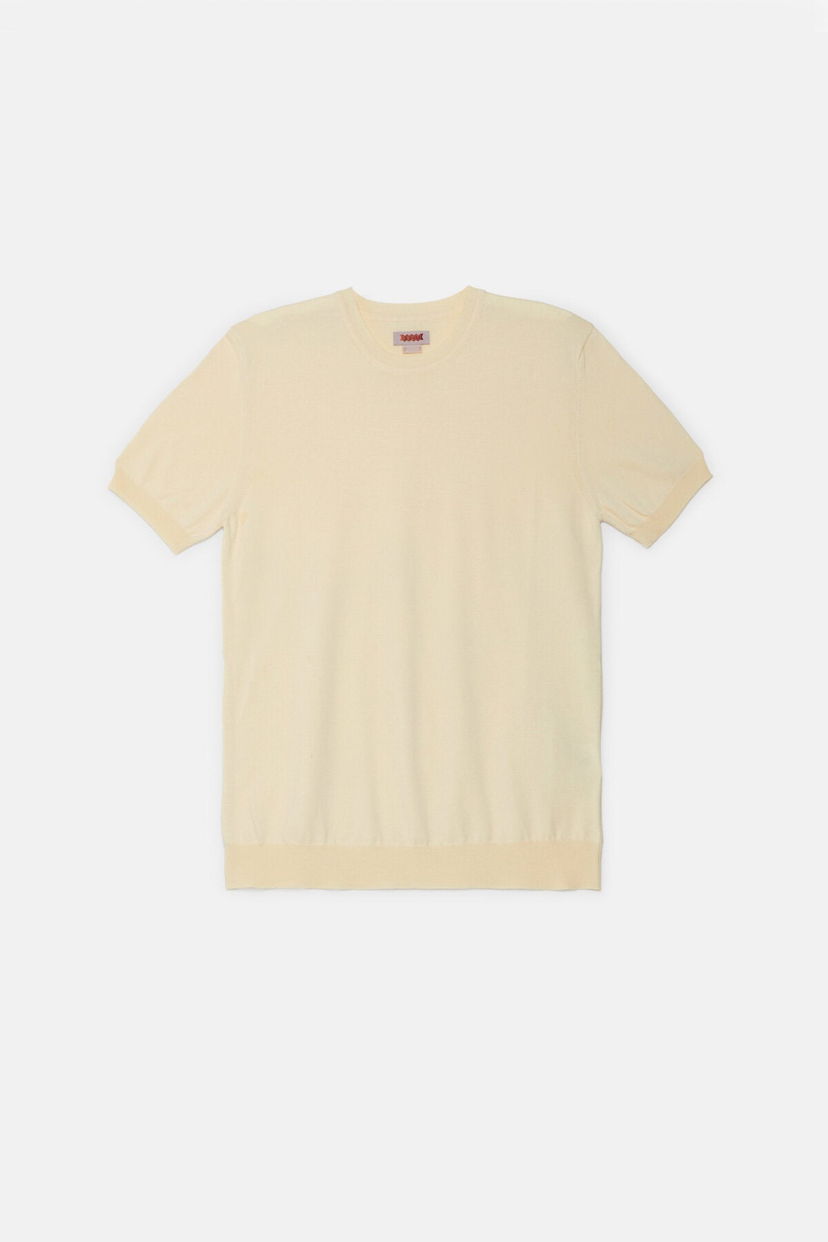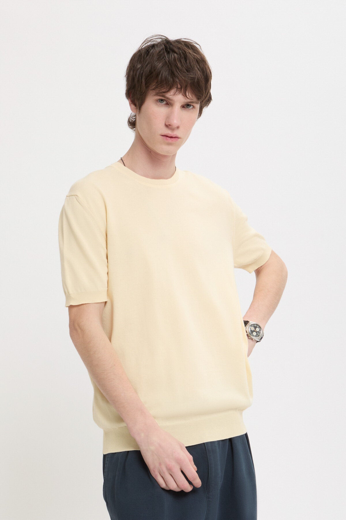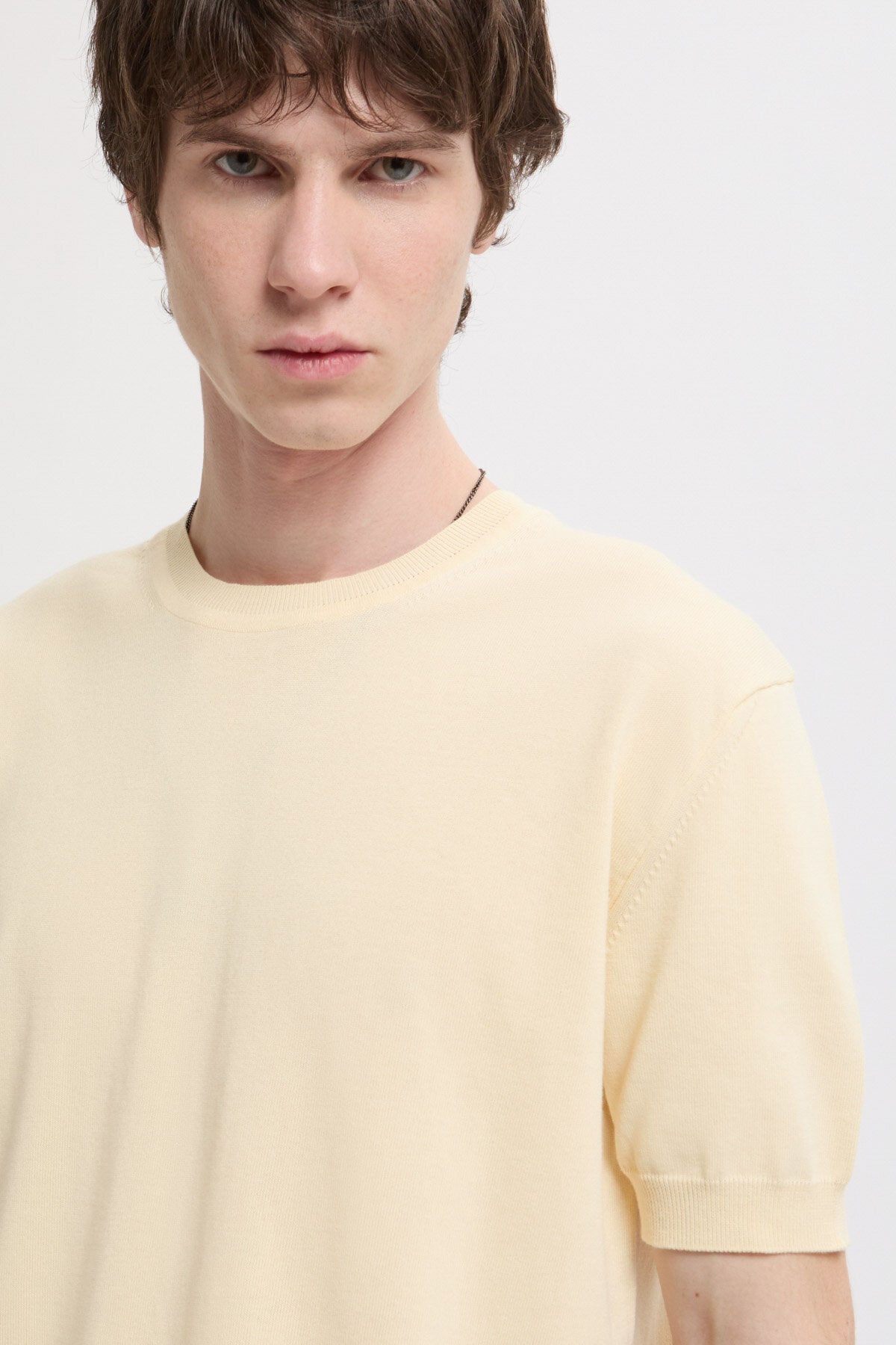 Das Strick-T-Shirt besteht aus 100 % Baumwolle und bietet ein weiches, atmungsaktives Tragegefühl und ein sauberes, strukturiertes Finish.