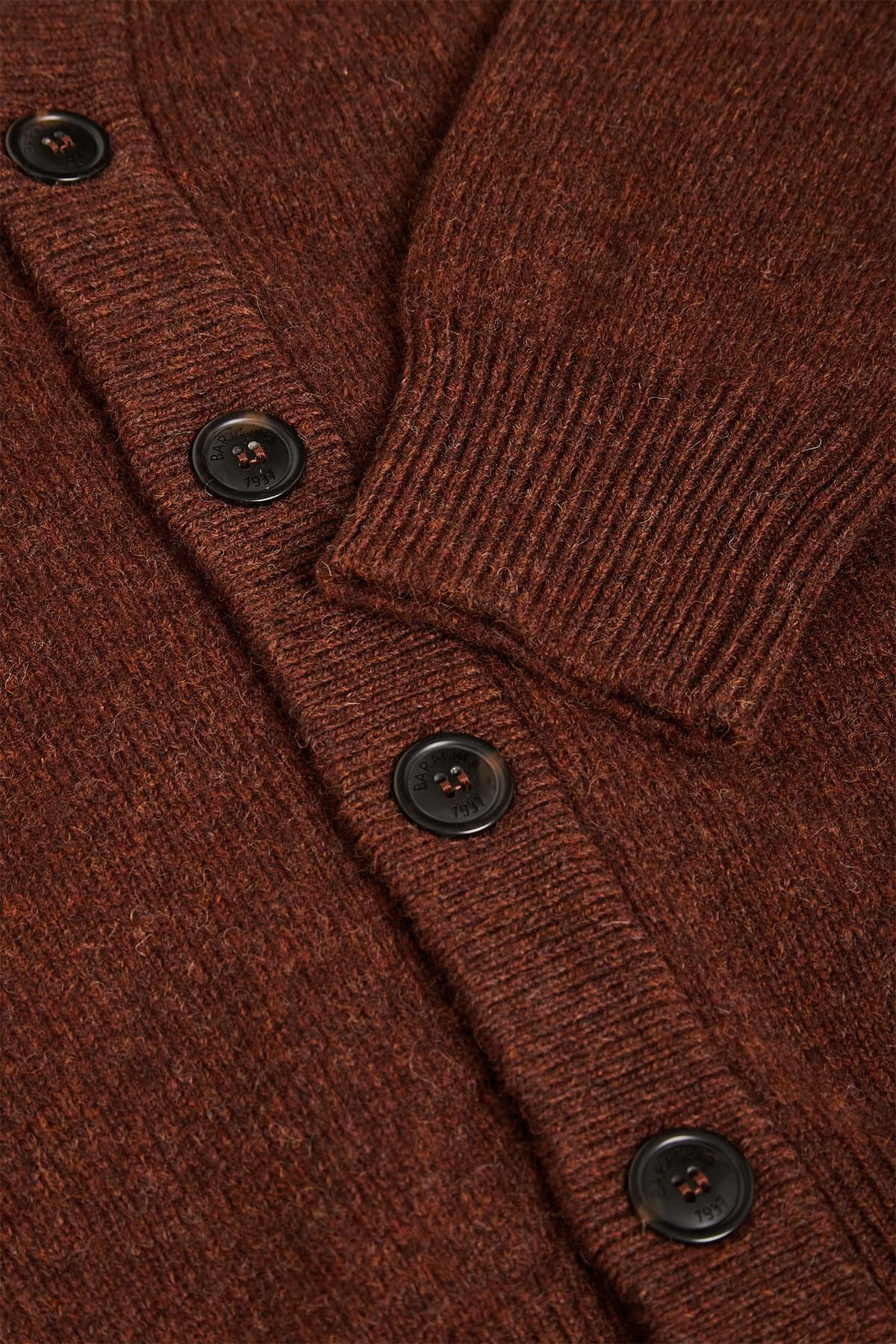 • Verleiht der Garderobe in dieser Saison einen Hauch von zeitloser Raffinesse: Unser Shetland Cardigan, der fachmännisch aus 100 % Schurwolle gefertigt ist. Das Modell mit klassischem V-Ausschnitt und zentralem Knopfverschluss mit Logo bietet die perfekte Balance zwischen Tradition und moderner Raffinesse und zeugt von britischem Stil. Das Ton-in-Ton gestickte Baracuta-Logo auf der Brust sorgt für einen dezenten, aber unverwechselbaren Hauch von Authentizität. Das bequeme Modell mit normaler Passform lässt sich mühelos über ein schnittiges Hemd ziehen und passt perfekt zur Lieblingsjacke von Baracuta. Eines dieser Stücke, das einfach funktioniert – egal zu welchem Look. Schlichte Brillanz in Form einer Strickjacke.