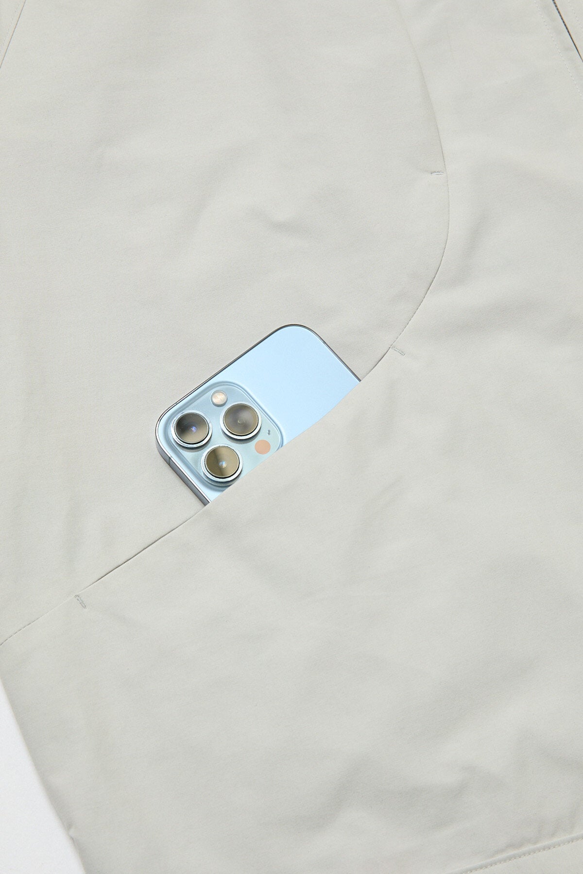 • • 4 particolari tasche frontali integrate nel design curvo del capospalla