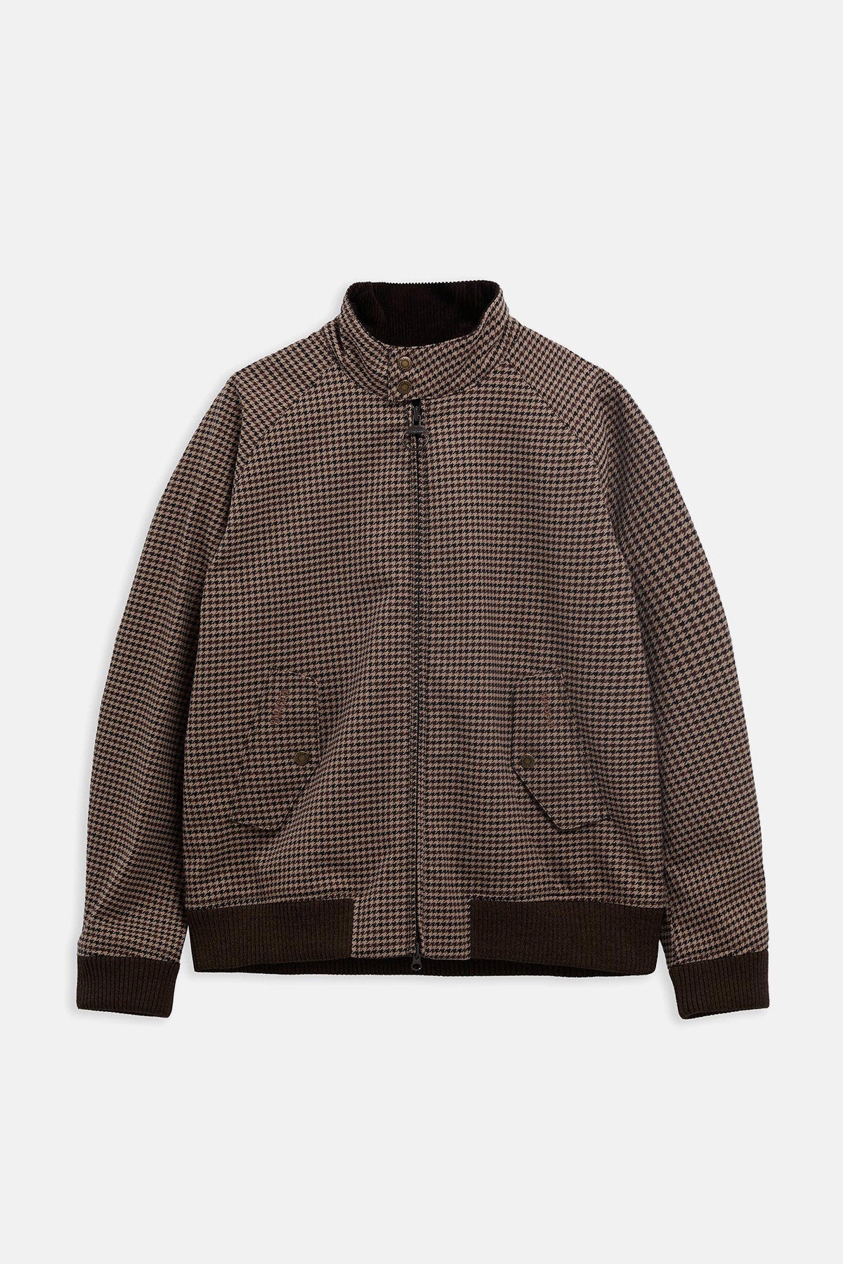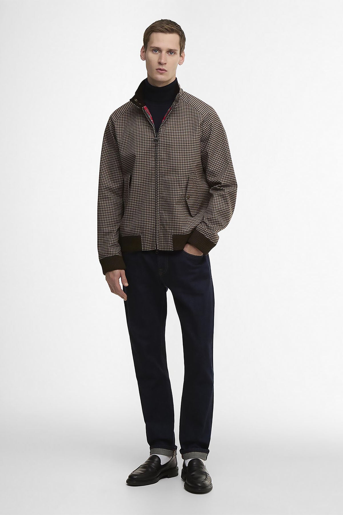 • • Nuovo modello frutto della collaborazione, che presenta il Baracuta G9 in un vistoso motivo pied-de-poule;