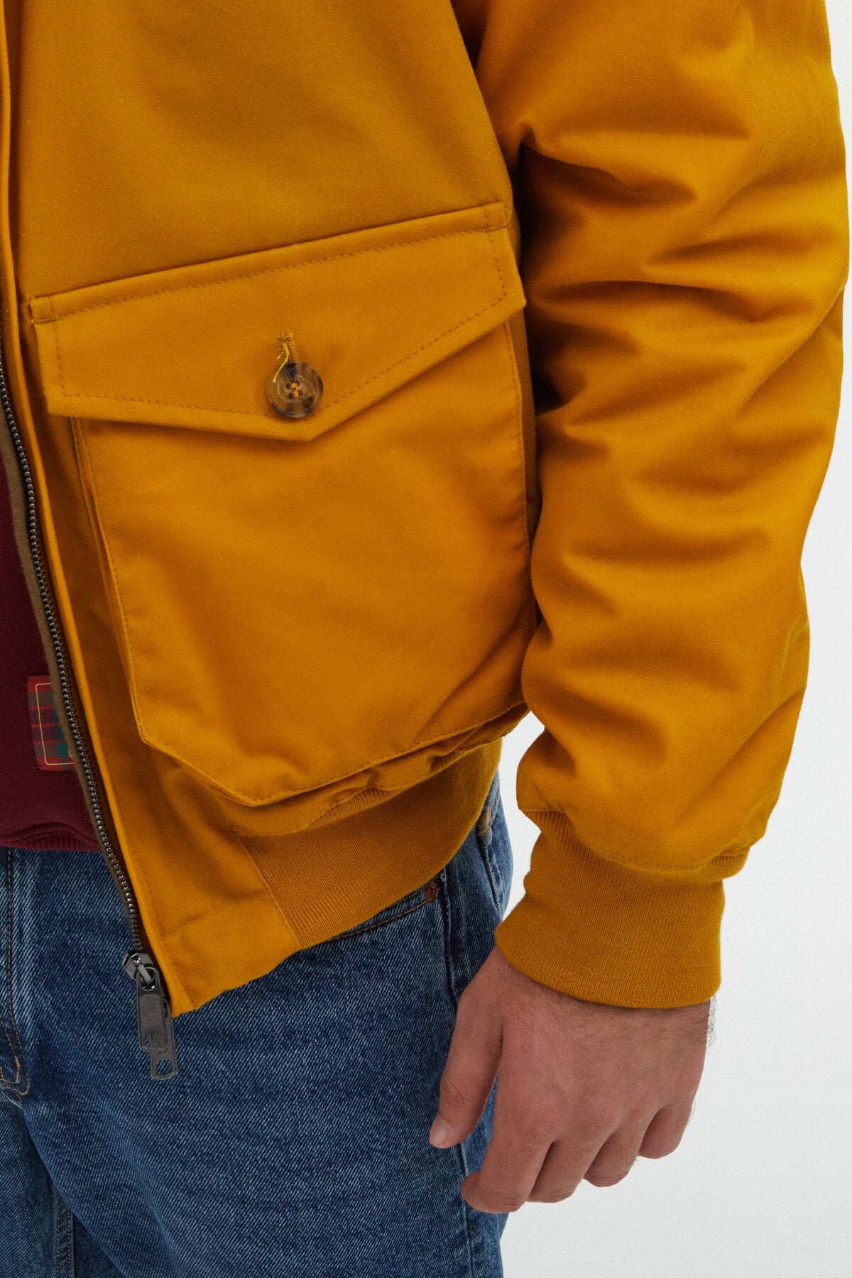 • Preparatevi ad affrontare il tempo umido e ventoso con il G9 Waxed Pocket, realizzato in cotone cerato British Millerain, il produttore originale di questo tessuto dal 1880. La vestibilità Authentic Fit lo rende più ampio e comodo rispetto al Regular Fit del nostro classico G9 Harrington. Questo modello reinterpreta una delle caratteristiche tradizionali del G9: al posto delle tipiche tasche laterali oblique, abbiamo inserito due tasche più grandi al centro della giacca. A parte questa novità, rimangono inalterati gli altri dettagli tipici del G9, come l'iconico spallone con motivo ad ombrello e il classico colletto a due bottoni. Consigliamo di indossarlo con il nostro Bucket Hat cerato per ottenere la massima protezione dalla pioggia!
