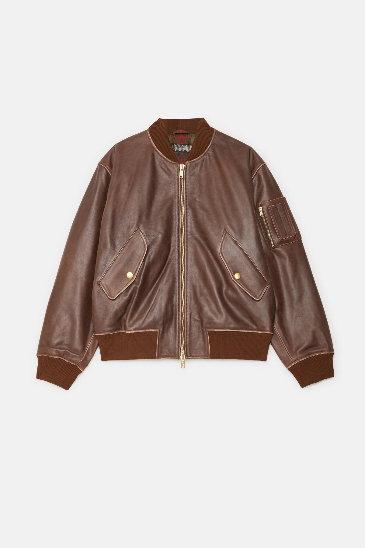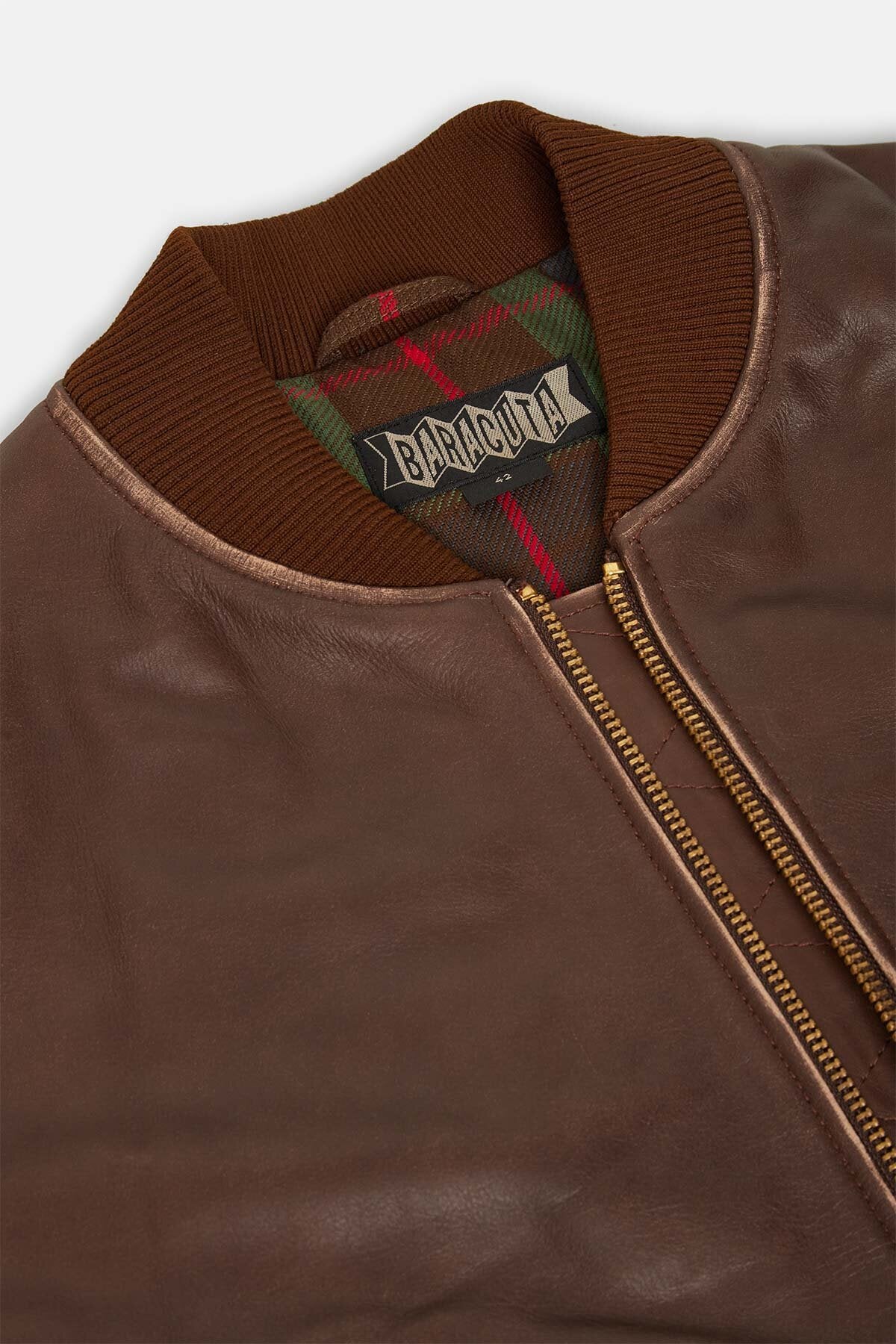 • La giacca da aviatore in pelle ripropone un classico capo dell’aviazione attraverso la raffinata lente di Baracuta. Realizzato in pelle bovina premium, questo modello dall’audace vestibilità oversize è interamente foderato con l’inconfondibile Fraser Tartan del brand per aggiungere un vero tocco di stile britannico. Le finiture a coste sottili sul colletto, sui polsini e sul girovita rendono il capospalla strutturato e confortevole, mentre la chiusura a zip con doppio cursore logato e le tasche diagonali con bottoni a pressione gli conferiscono carattere e praticità. Una giacca intramontabile pensata per durare per sempre.