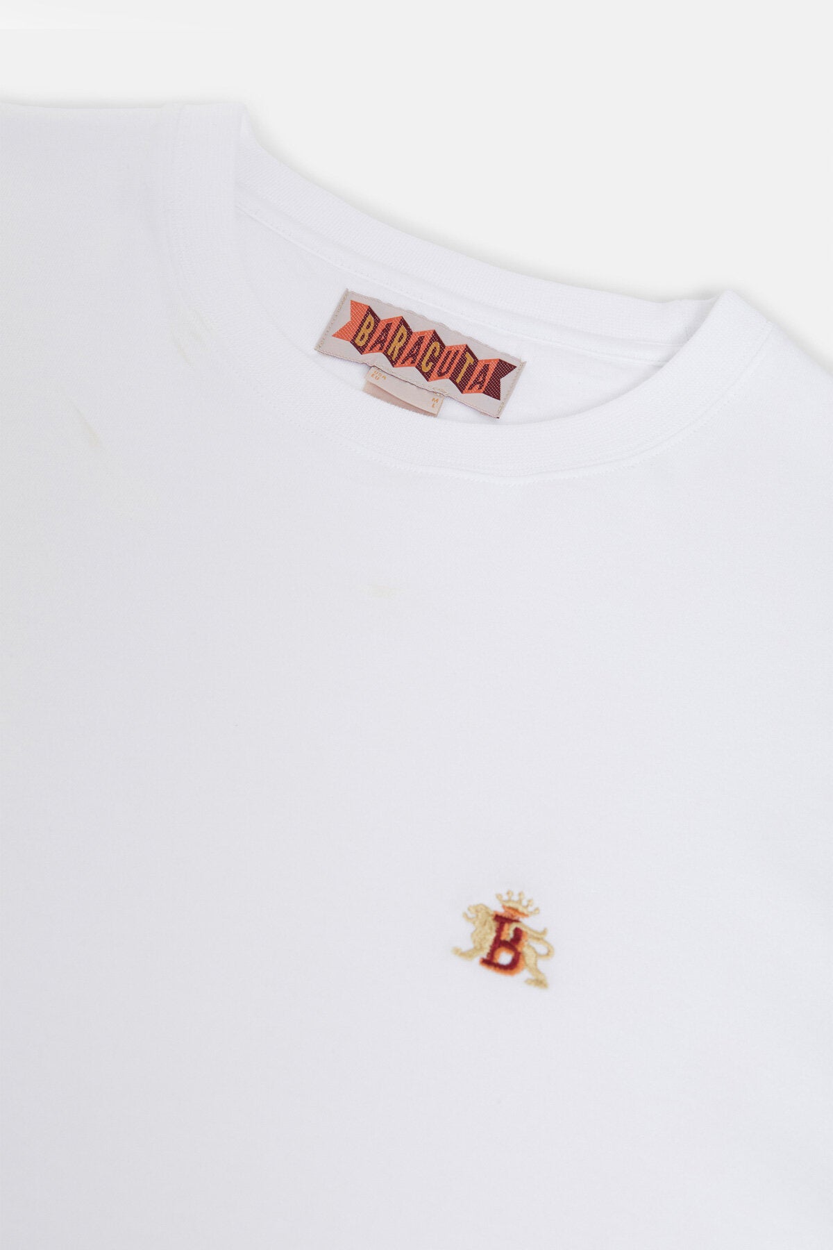 Sotto al G9 non può mai mancare una T-shirt. Realizzata in 100% cotone, questa T-shirt girocollo è morbida, traspirante e progettata per durare nel tempo. Il logo Baracuta ricamato sul petto conferisce al capo un vero tocco distintivo, rendendolo perfetto da indossare tutti i giorni.