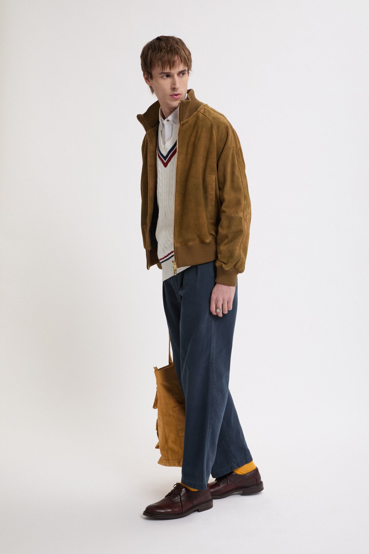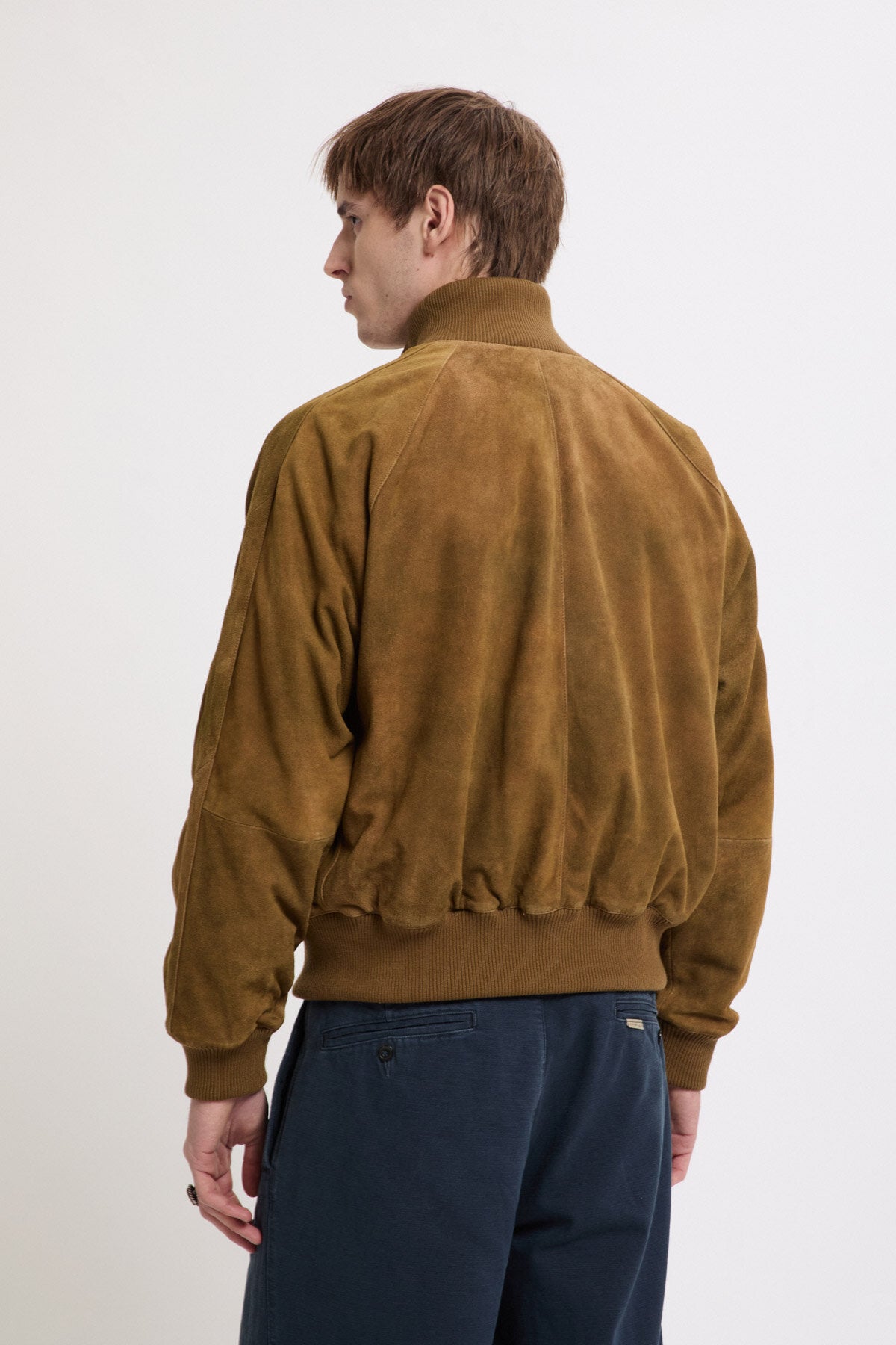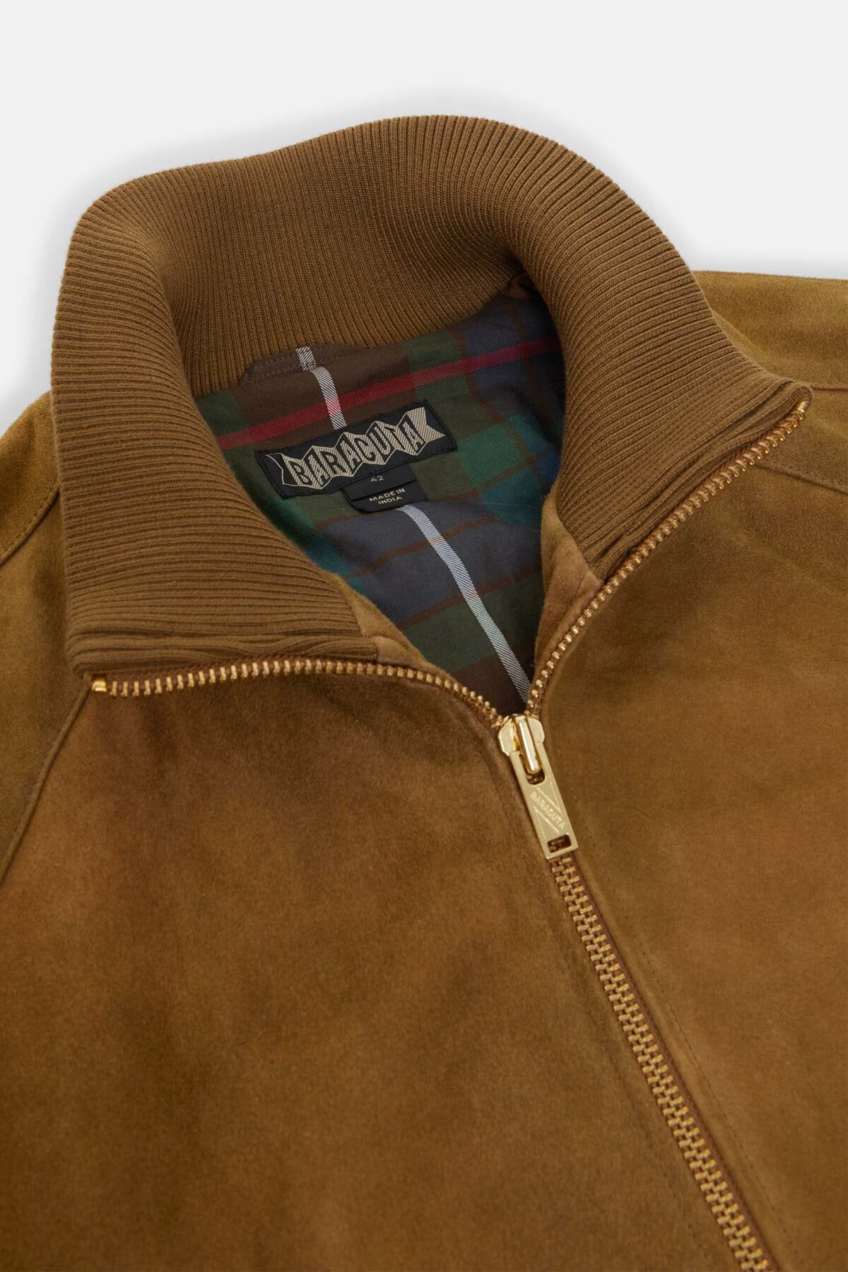 • The Antique Suede Track Jacket is made from 100% carefully selected suede, treated to create a subtly worn-in, vintage finish that highlights the natural quality of the leather. Designed with raglan sleeves and elasticated ribbed collar, cuffs, and hem, it allows ease of movement and a clean, tailored fit. Every detail is thoughtfully considered to combine functionality with lasting construction.