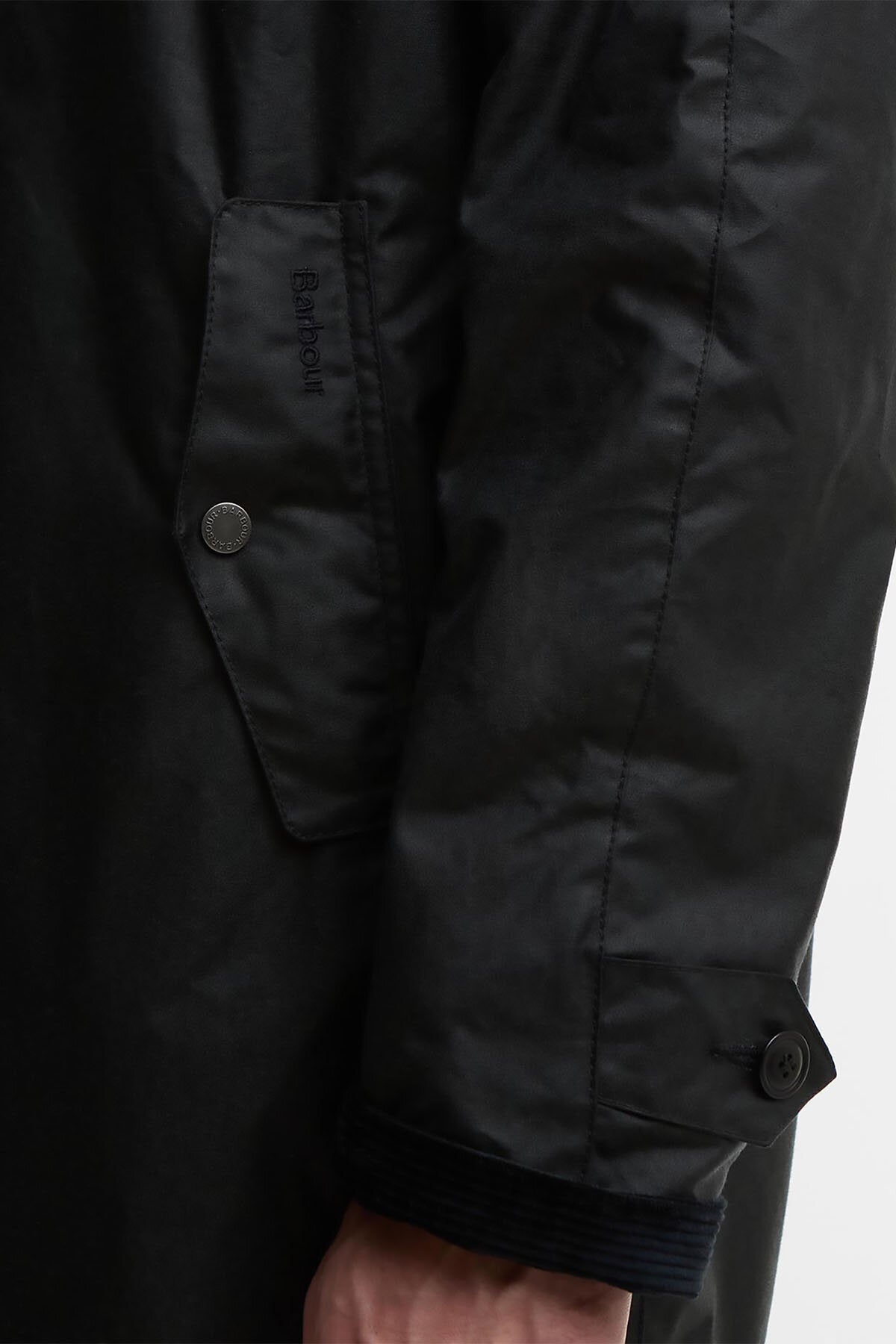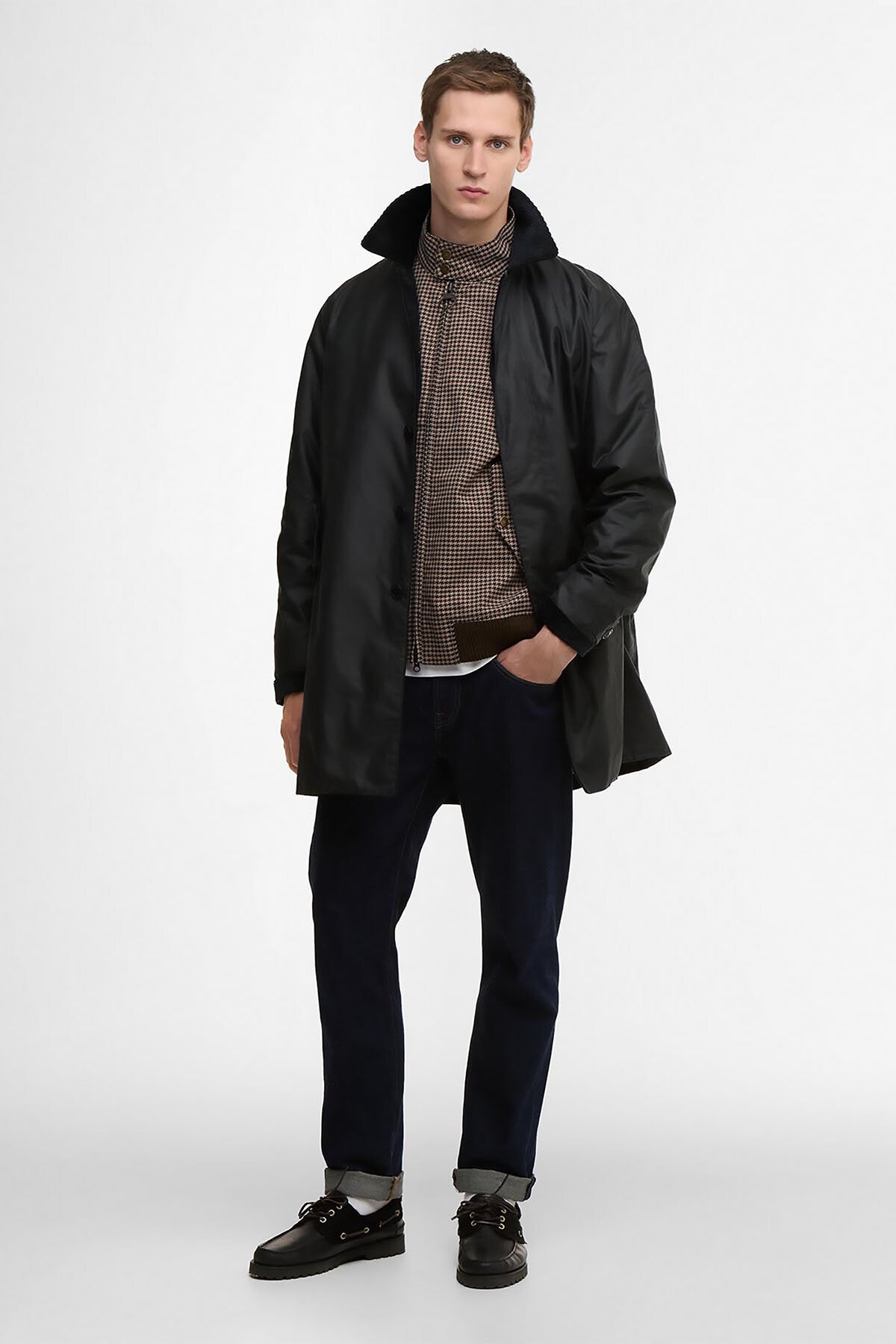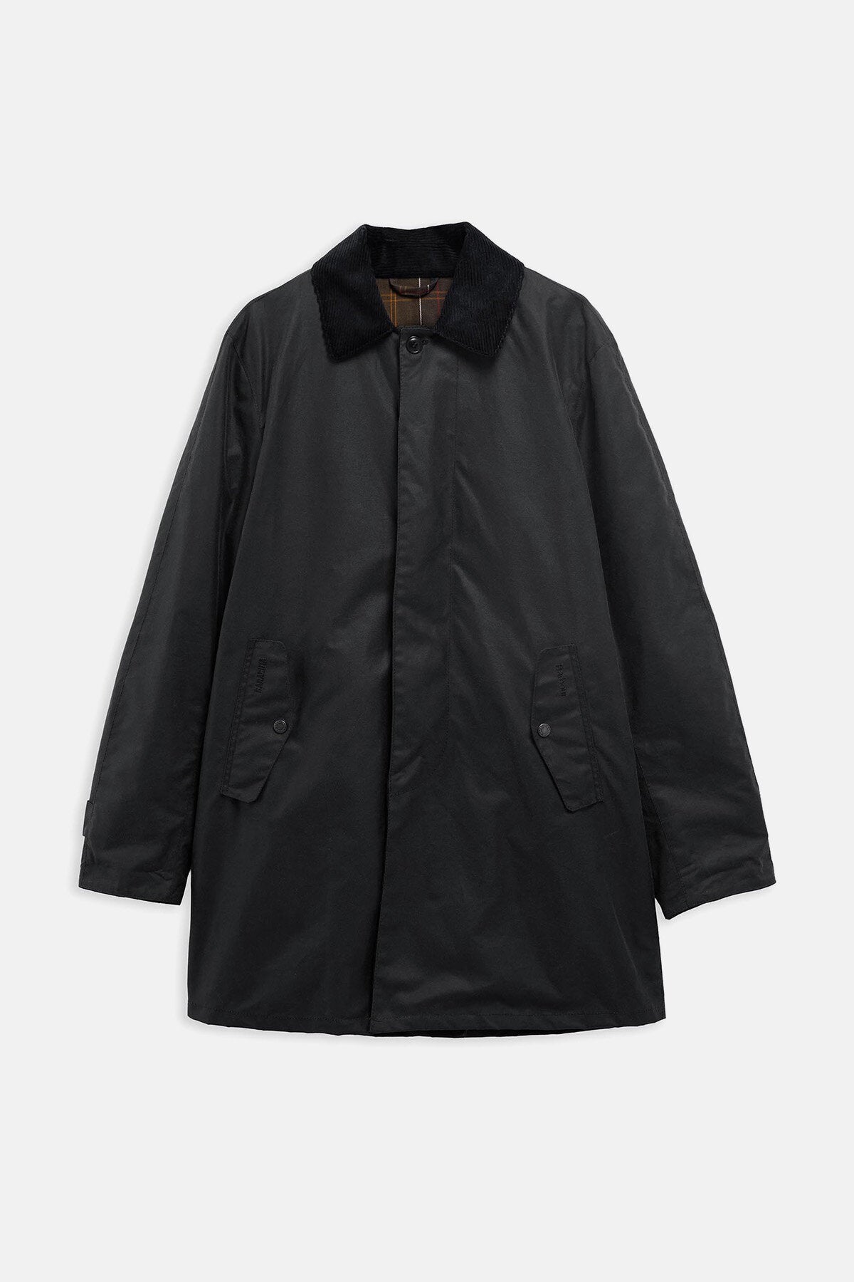 New to the collaboration, the Barbour x Baracuta Tyne Waxed Coat is inspired by a Baracuta classic, the G10. Adding a touch of signature Barbour design, this car coat design has been crafted from our 6oz Sylk oil waxed cotton and detailed with a 8-wale cord collar for a durable and timeless look. Complete with set in front sleeves with a raglan back and umbrella back yoke, this coat is perfect for wearing in wetter weather.