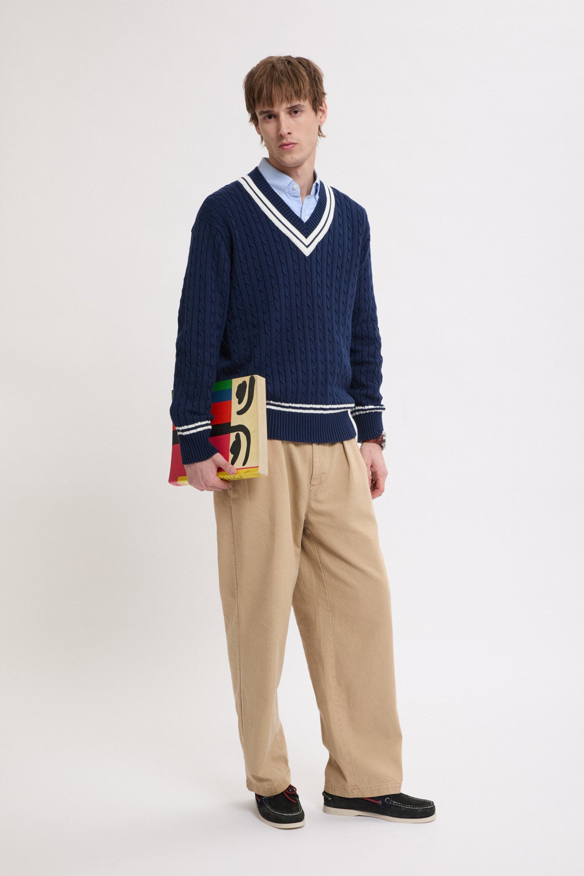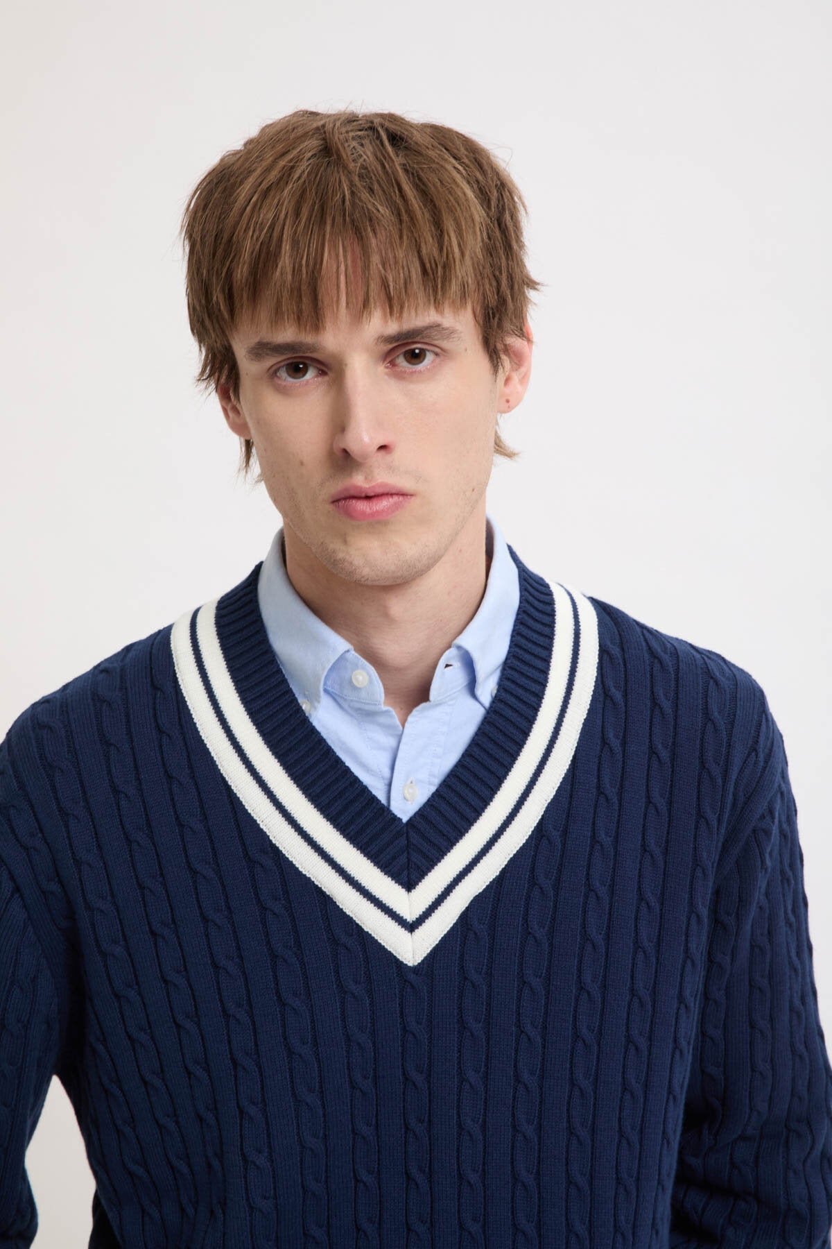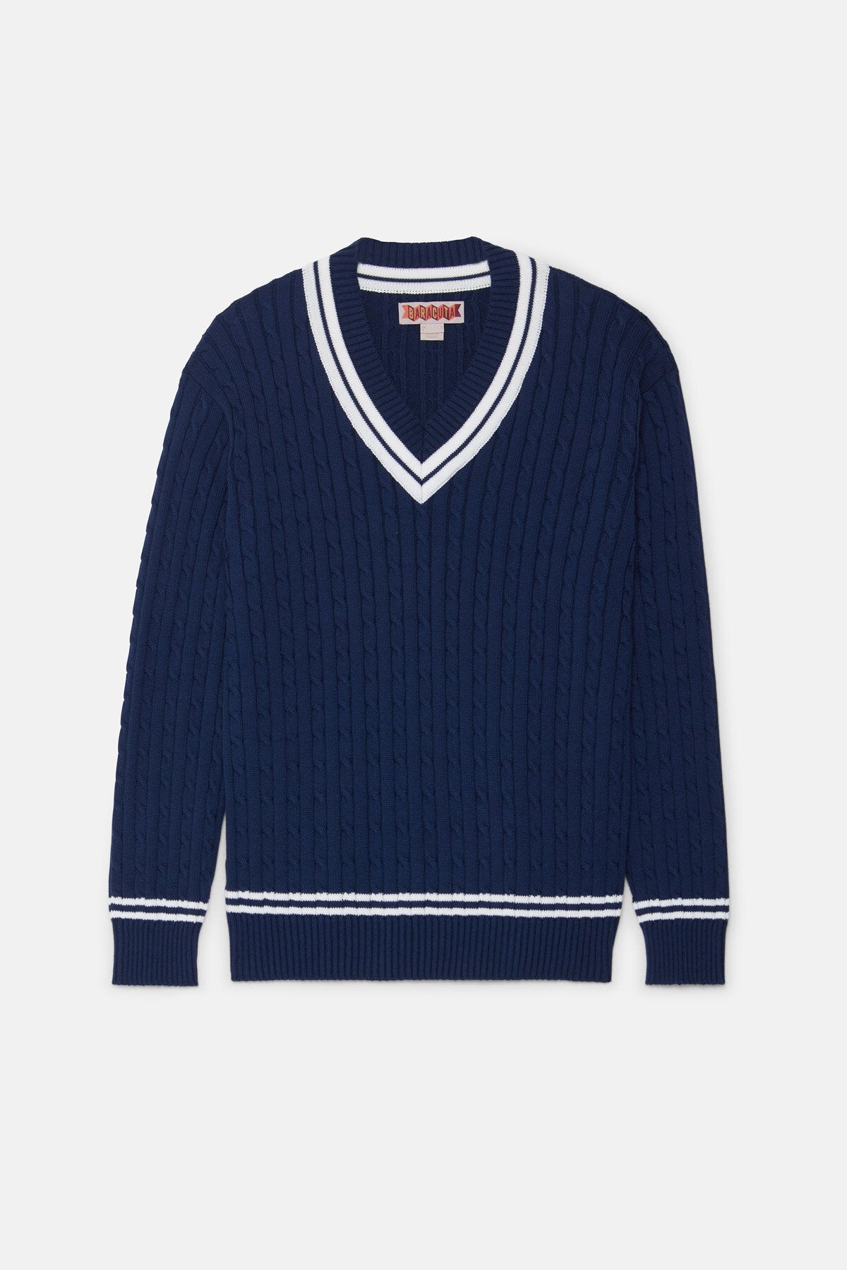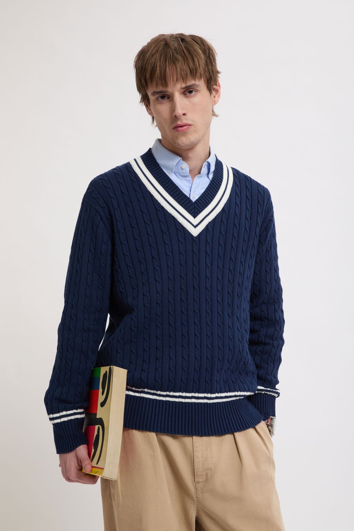 • The Cricket V-Neck is made from 100% cotton cable knit, soft yet sturdy for everyday wear.