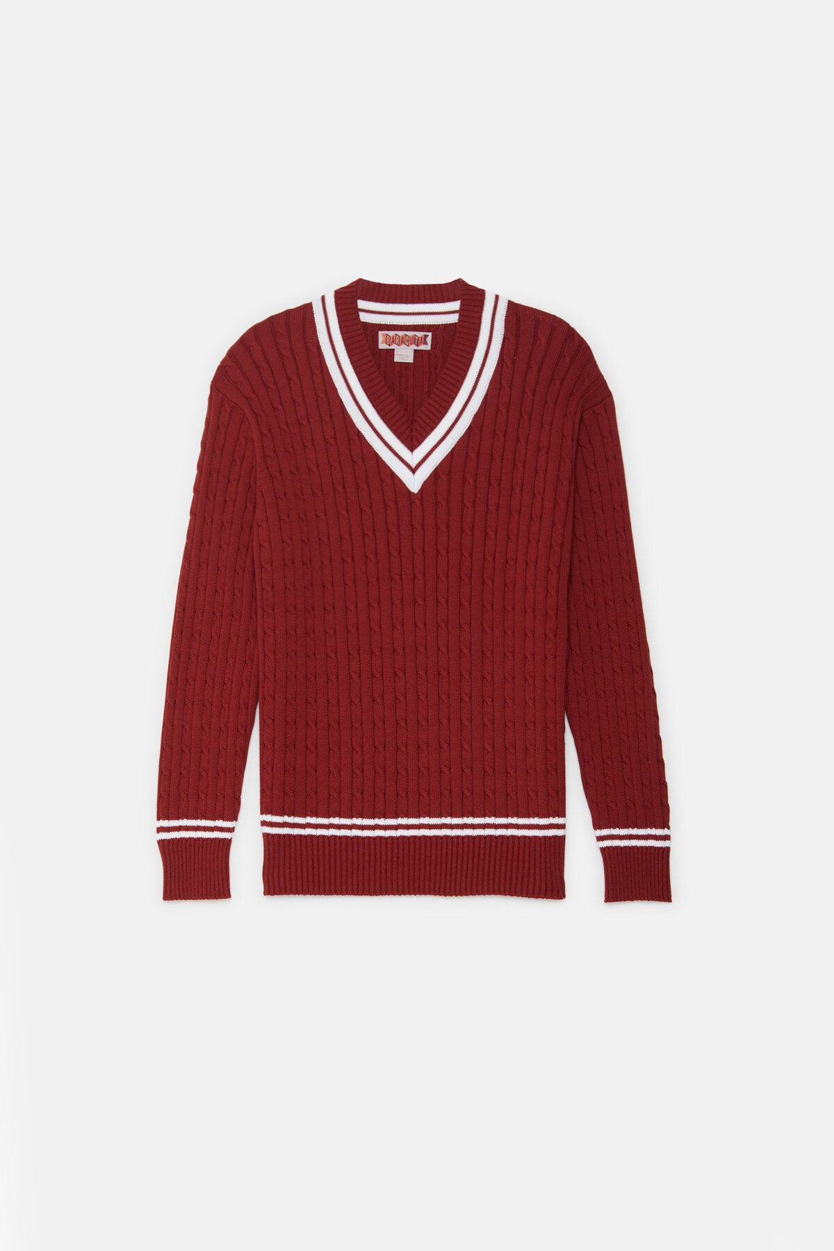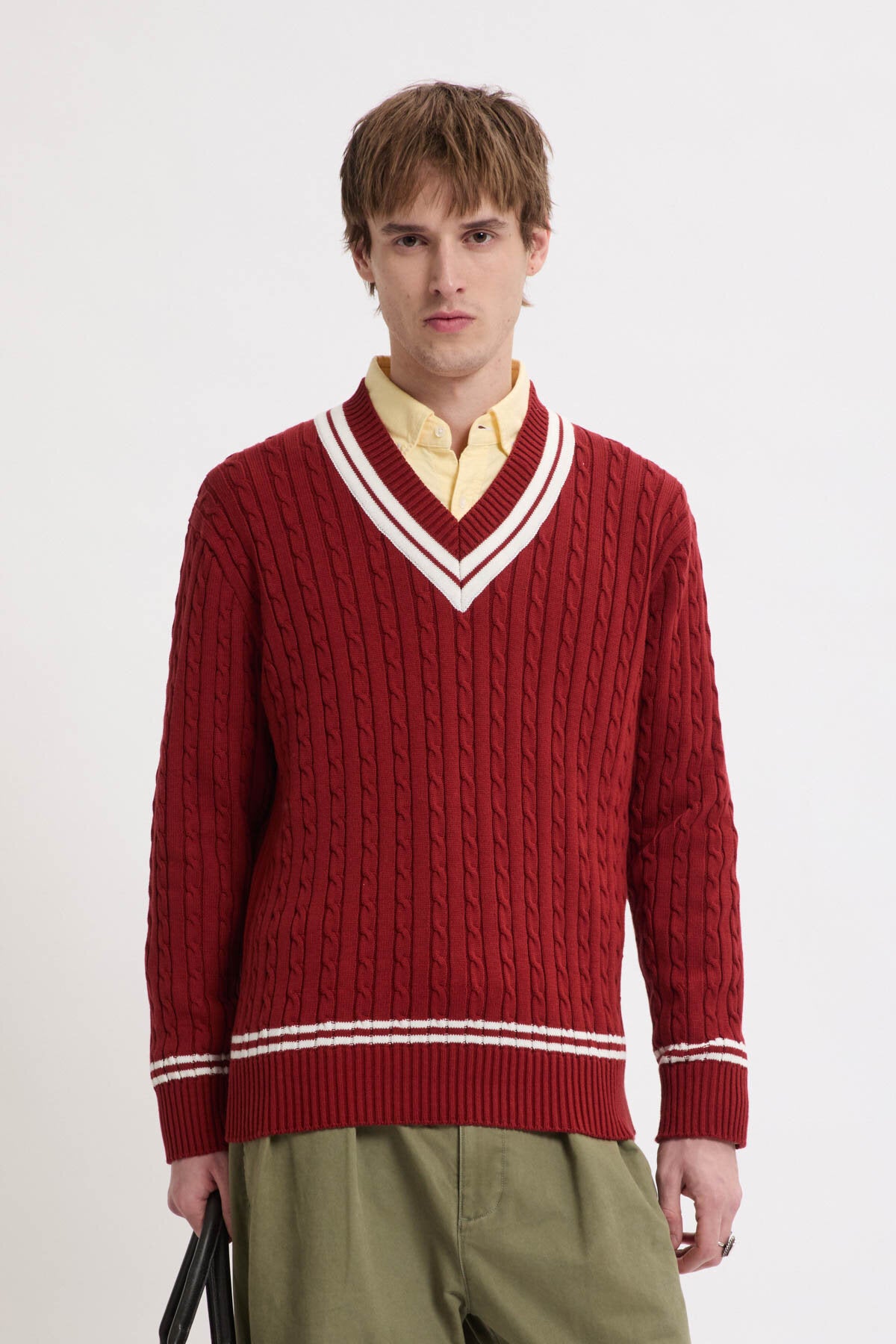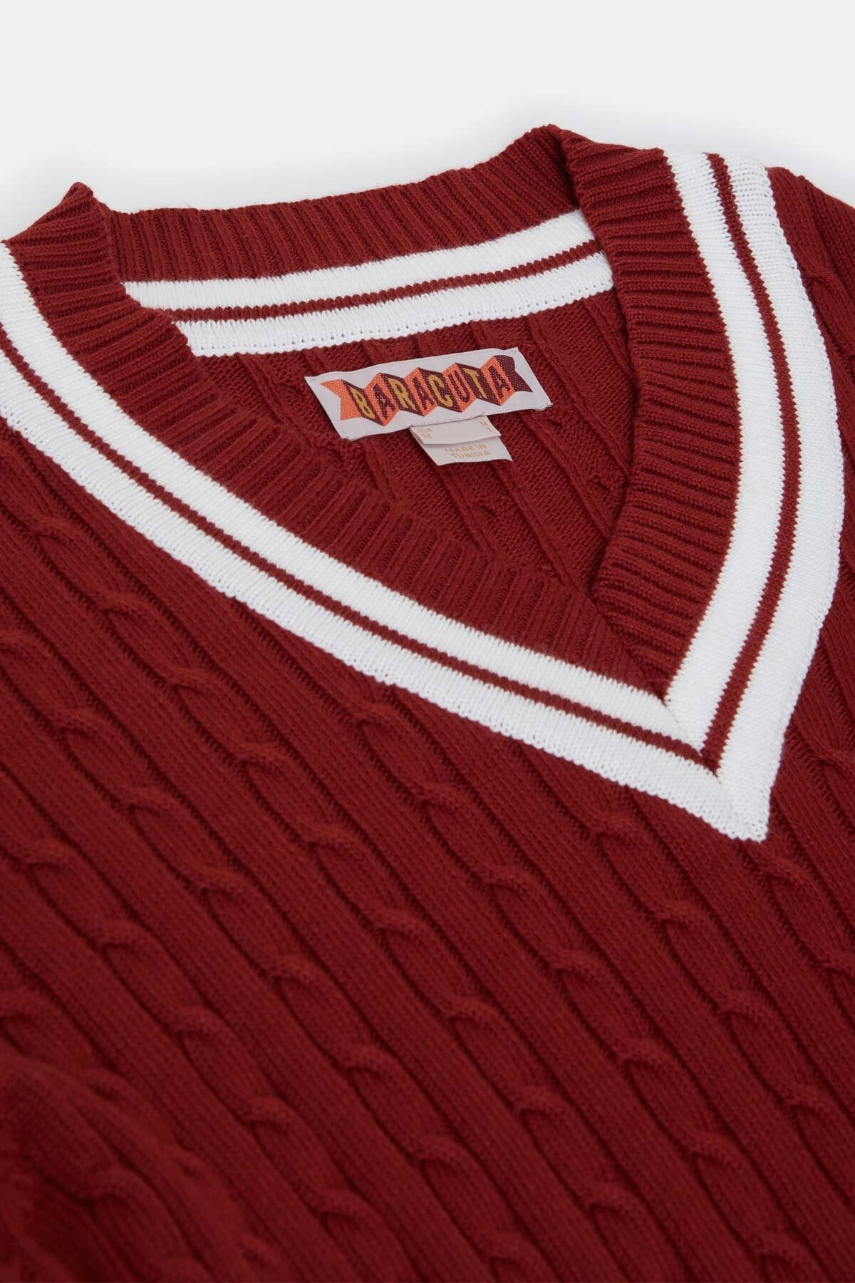 The Cricket V-Neck is made from 100% cotton cable knit, soft yet sturdy for everyday wear.