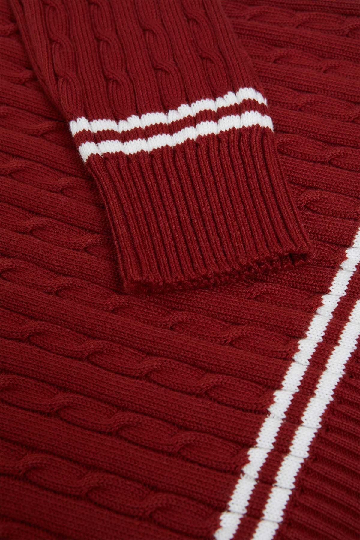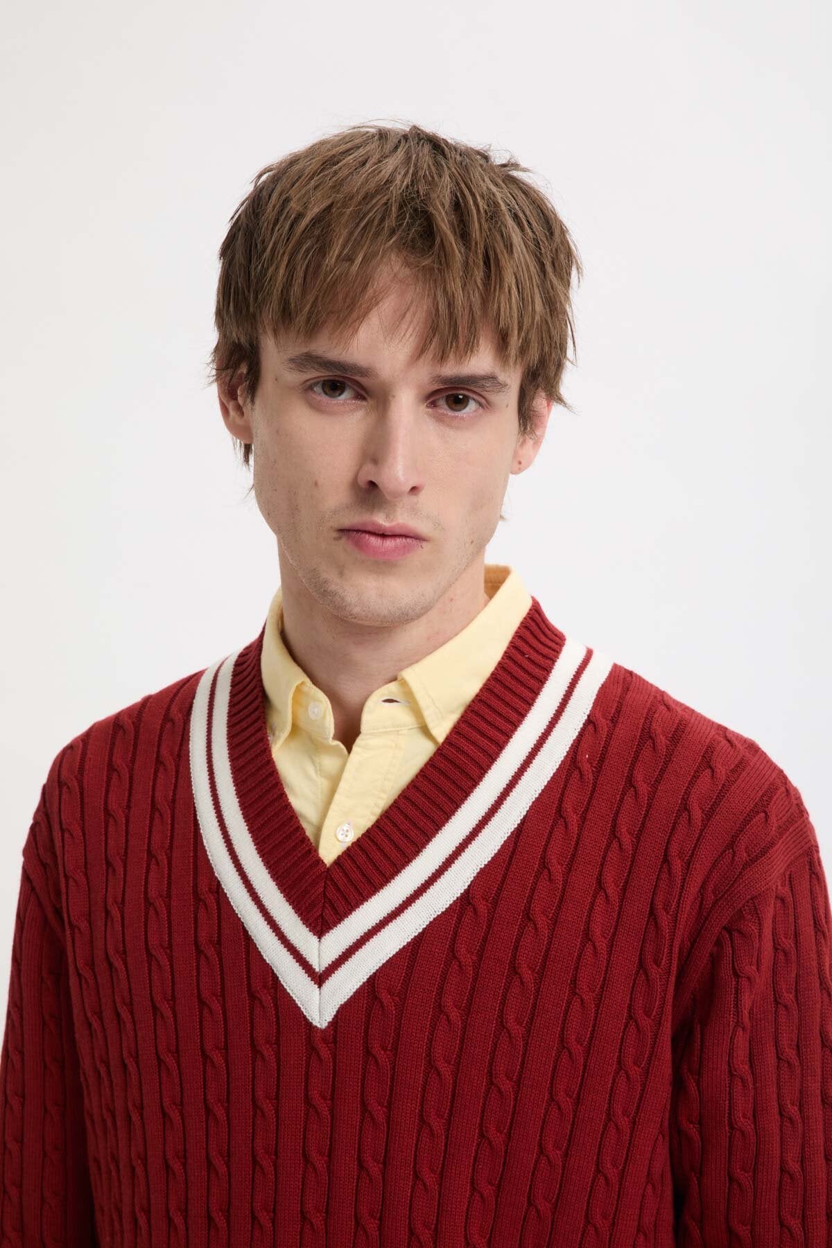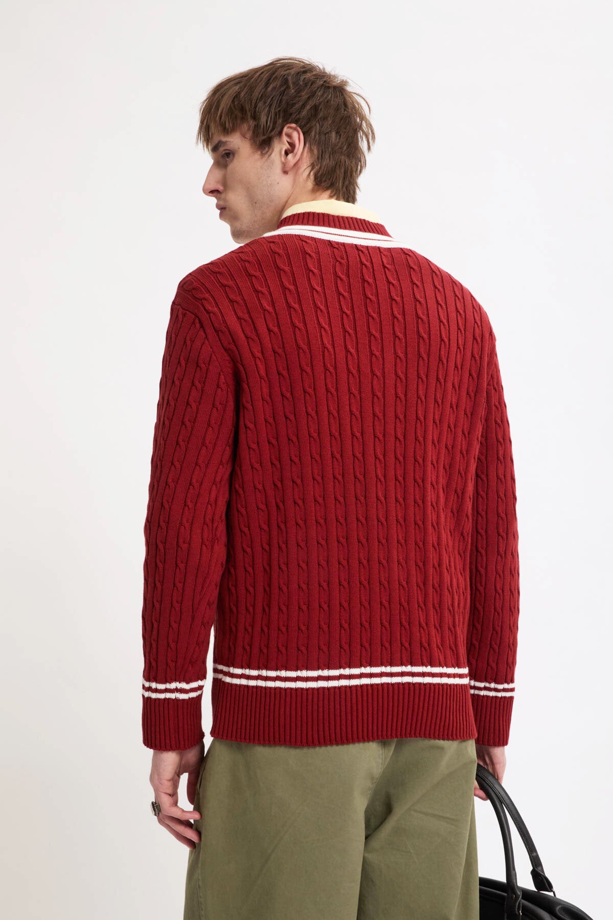 The Cricket V-Neck is made from 100% cotton cable knit, soft yet sturdy for everyday wear.