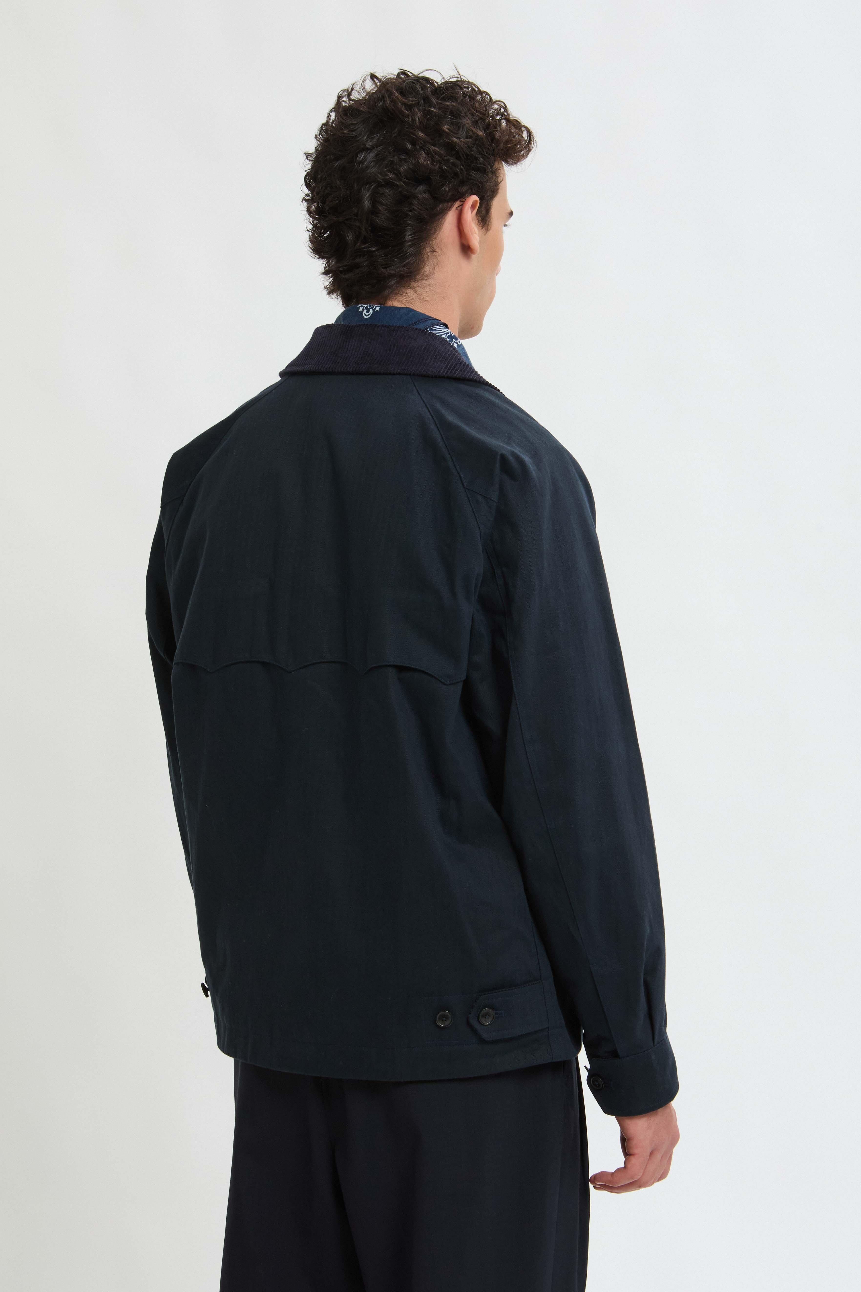 Made from a technical fabric with a soft, matte finish, it provides light protection from wind and rain while maintaining a refined appearance. The corduroy collar adds both texture and comfort, while the lined interior ensures warmth and practicality on cooler days.