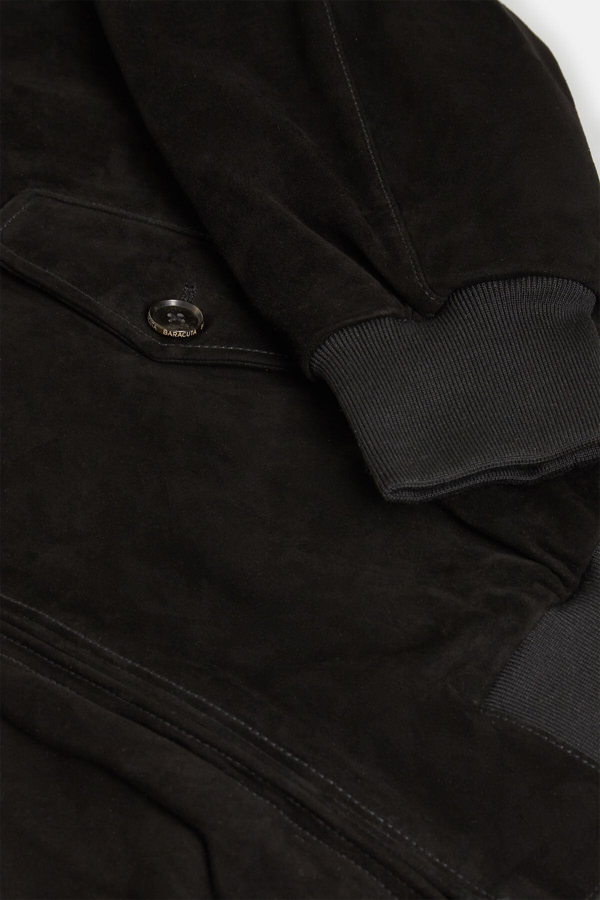 • • Tone-on-tone internal pocket with personalised Baracuta button closure