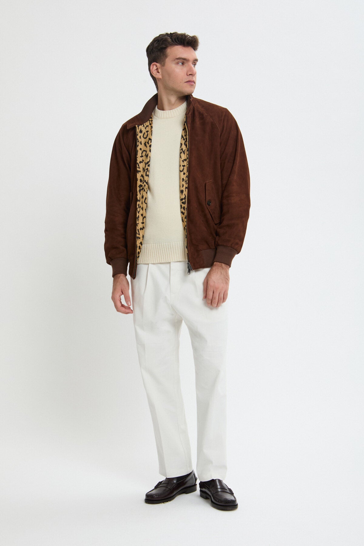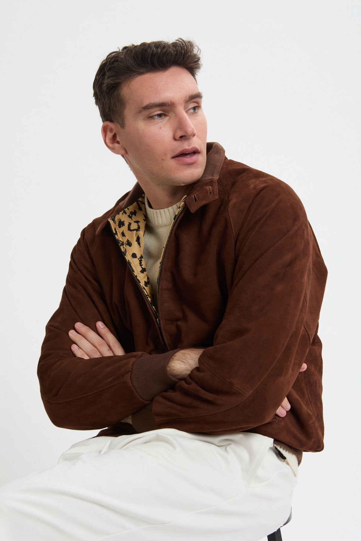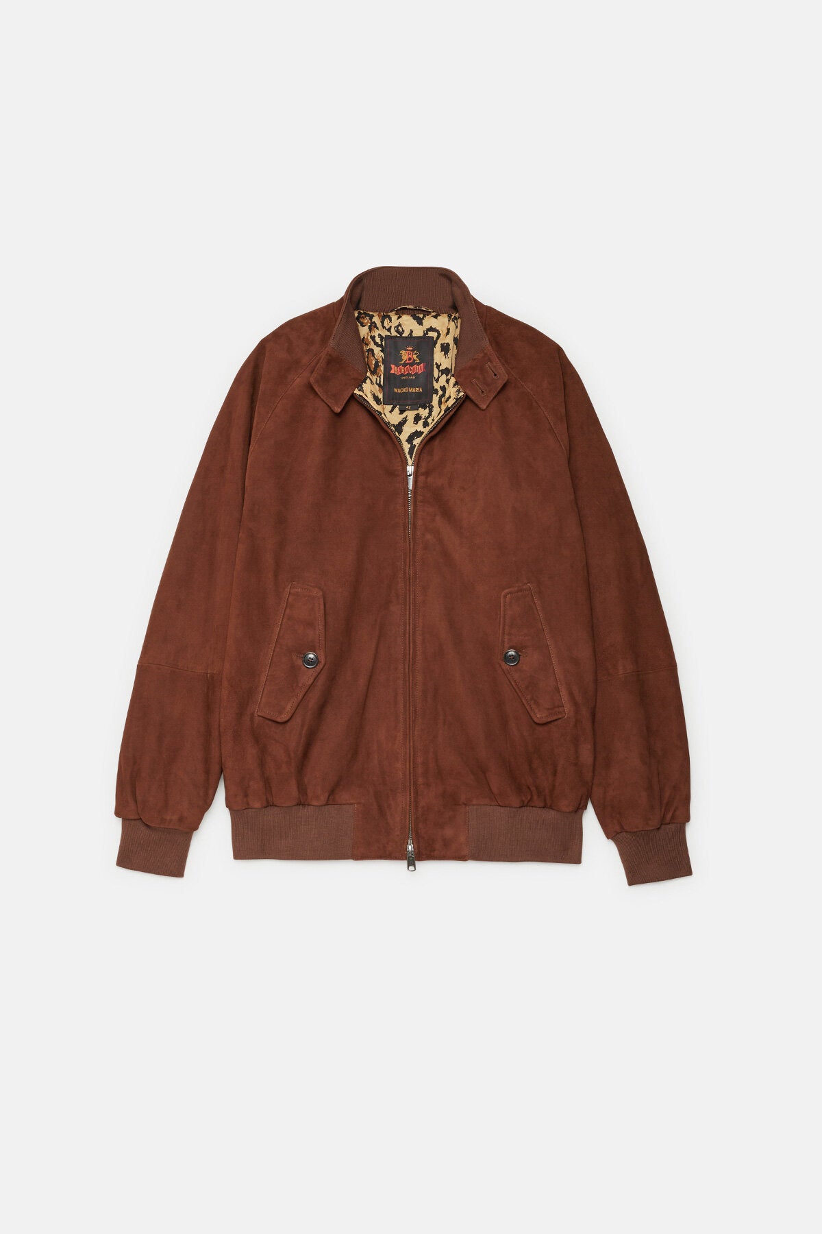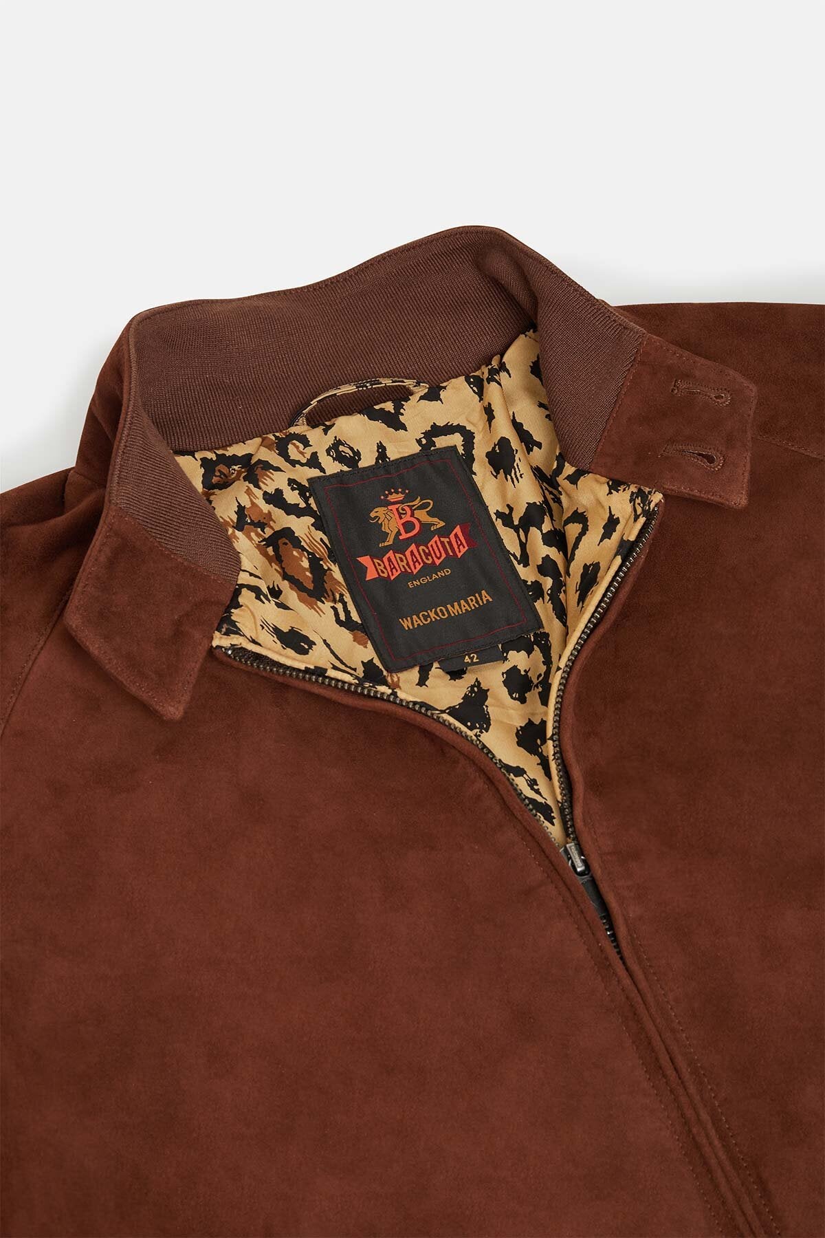 • The G9 Suede x Wacko Maria returns in a striking animalier edition, in three standout colourways: Black, Tobacco, and Chocolate. The outer layer is crafted from premium Baracuta suede, while inside the iconic leopard-print lining brings unmistakable Wacko Maria attitude, finished with a subtle metal chain loop detail. Both the design and fit have been updated, featuring a looser cut for a softer, unisex feel.