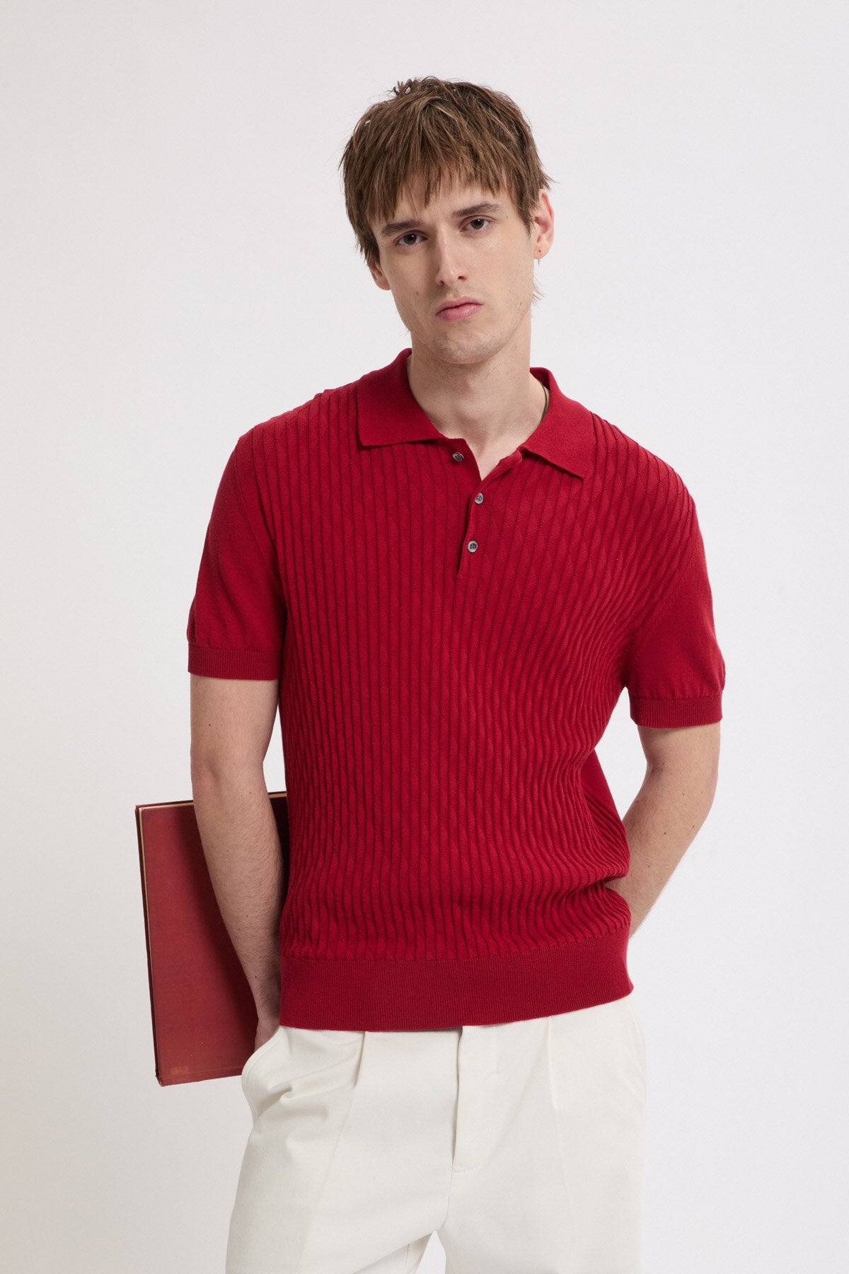 • The Pattern Stitch SS Polo is made from 100% cotton, carefully selected for its durable finish. Cotton provides natural breathability and resilience, making it ideal for everyday wear. The standout feature is the diamond-pattern stitch on the front, a detail achieved through careful knitting.