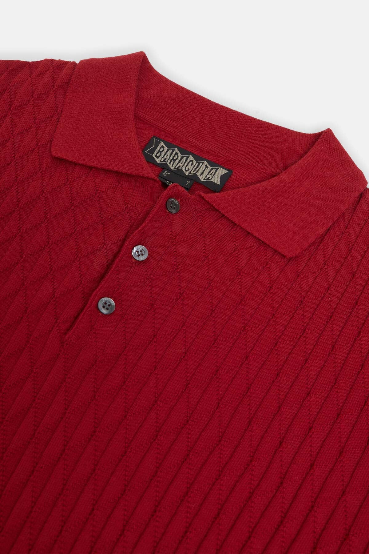 Baracuta uses UK sizes. The Pattern Stitch SS Polo is Slim fitting