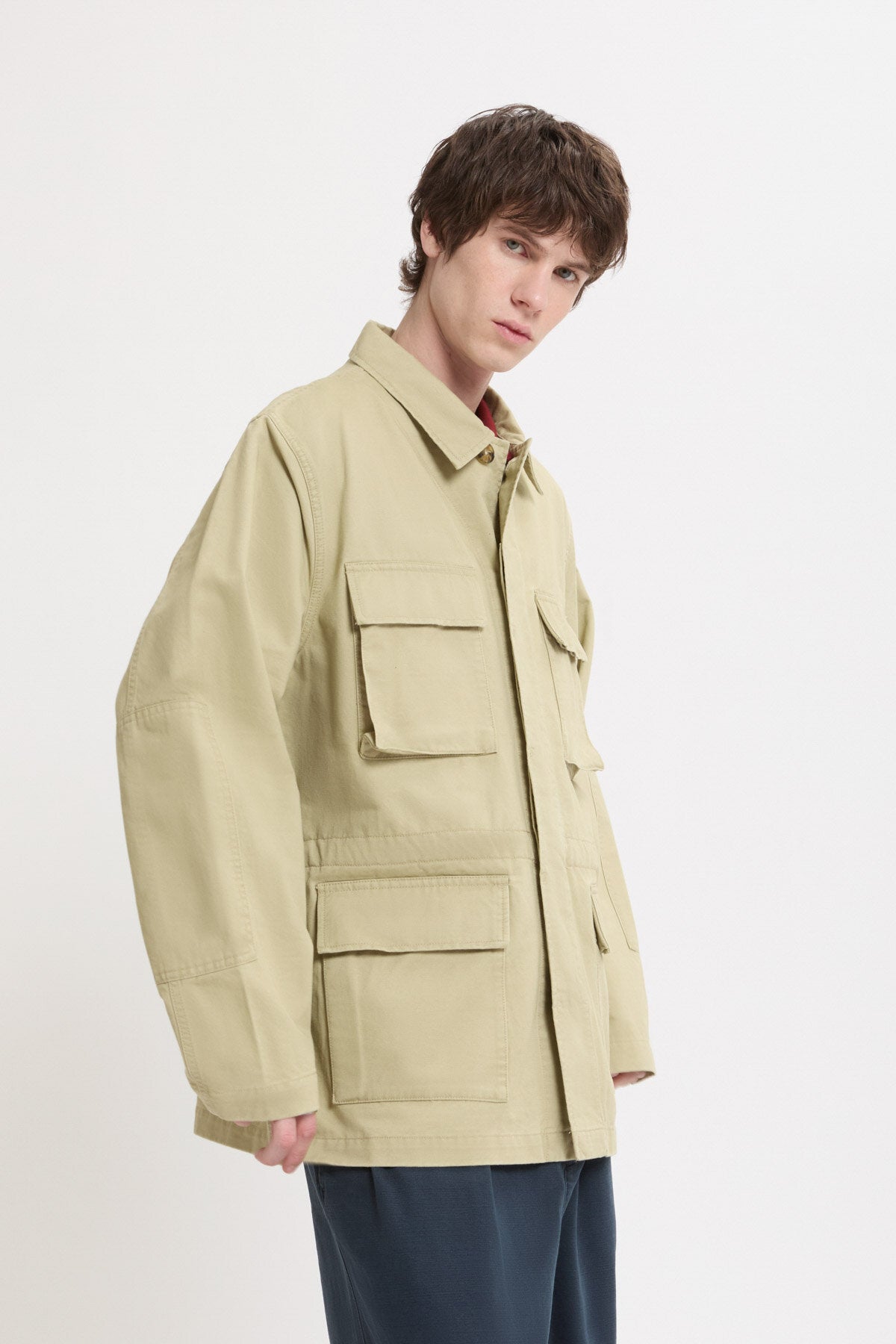 The Twill Field Jacket is crafted from 100% cotton twill, a fabric celebrated for its distinctive diagonal weave that combines strength with softness. This structure not only gives the jacket subtle texture but also allows air to circulate, making it lightweight and breathable and ideal for layering across seasons.